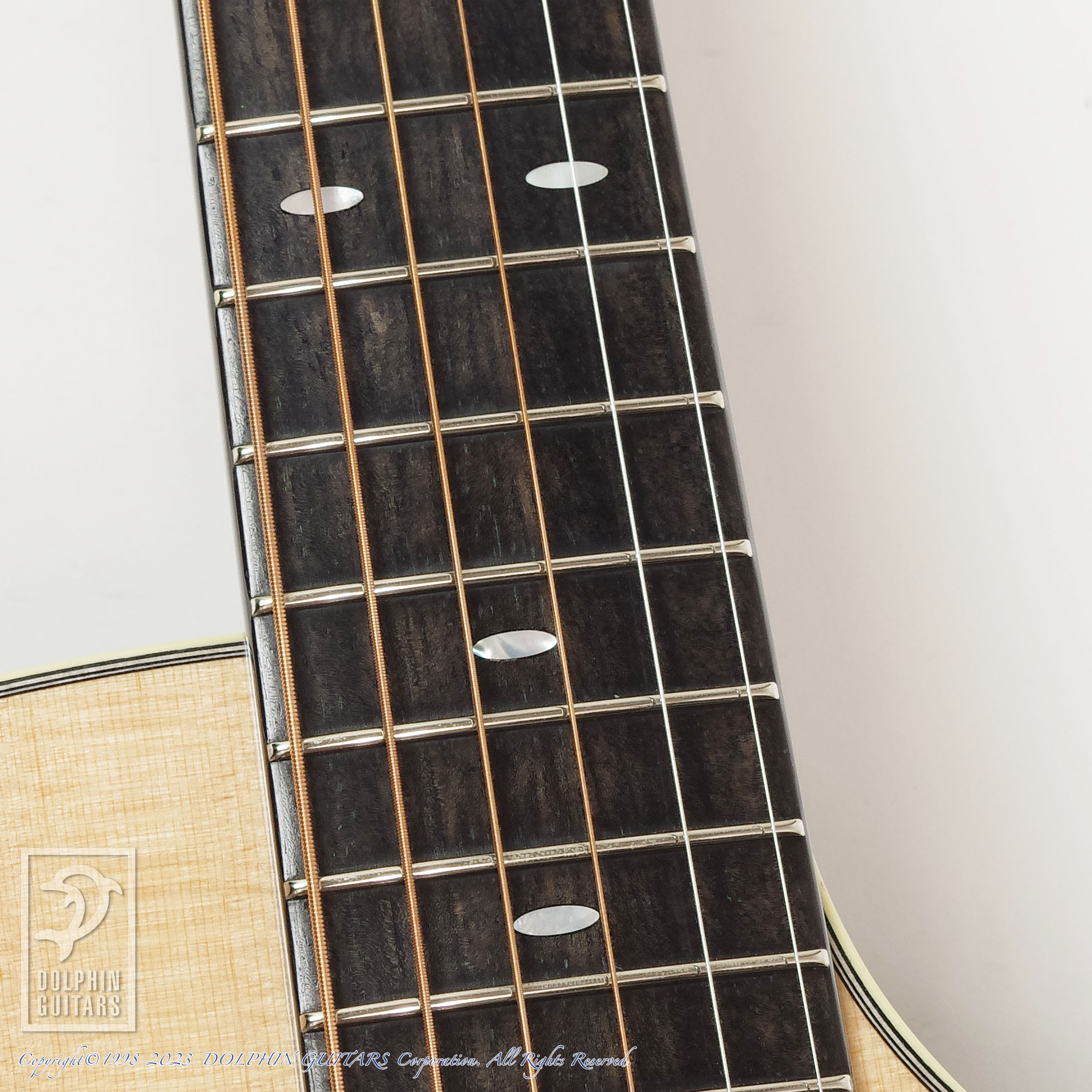 その他:ベネチアンカッタウェイ、43mmナット幅、647,7mmスケール、牛骨ナット・サドル、ラッカーグロスフィニッシュ