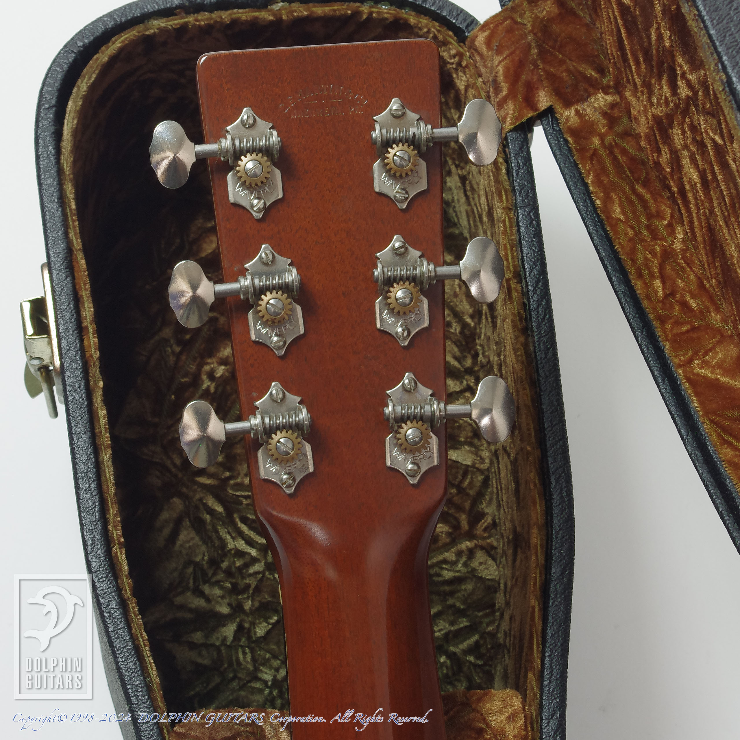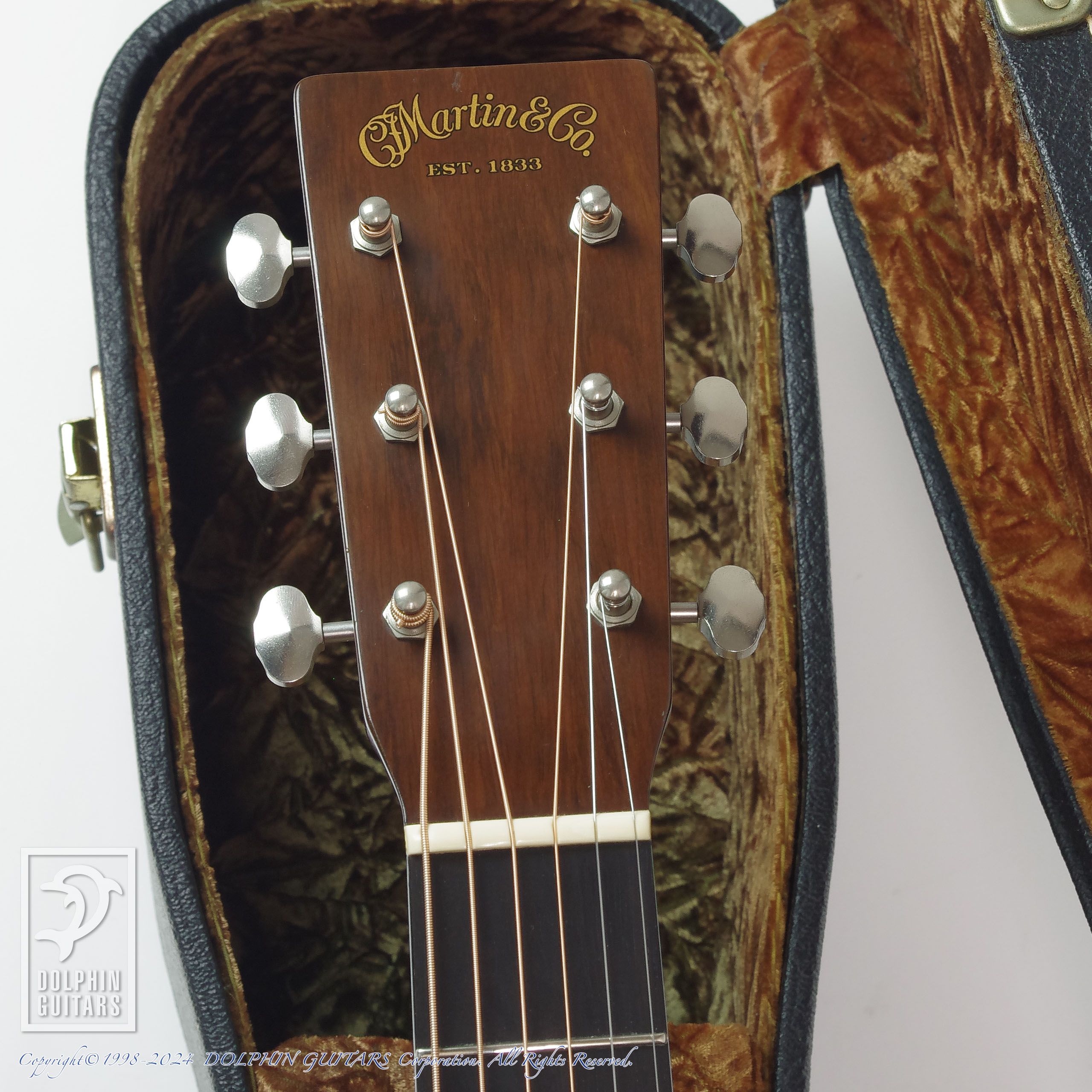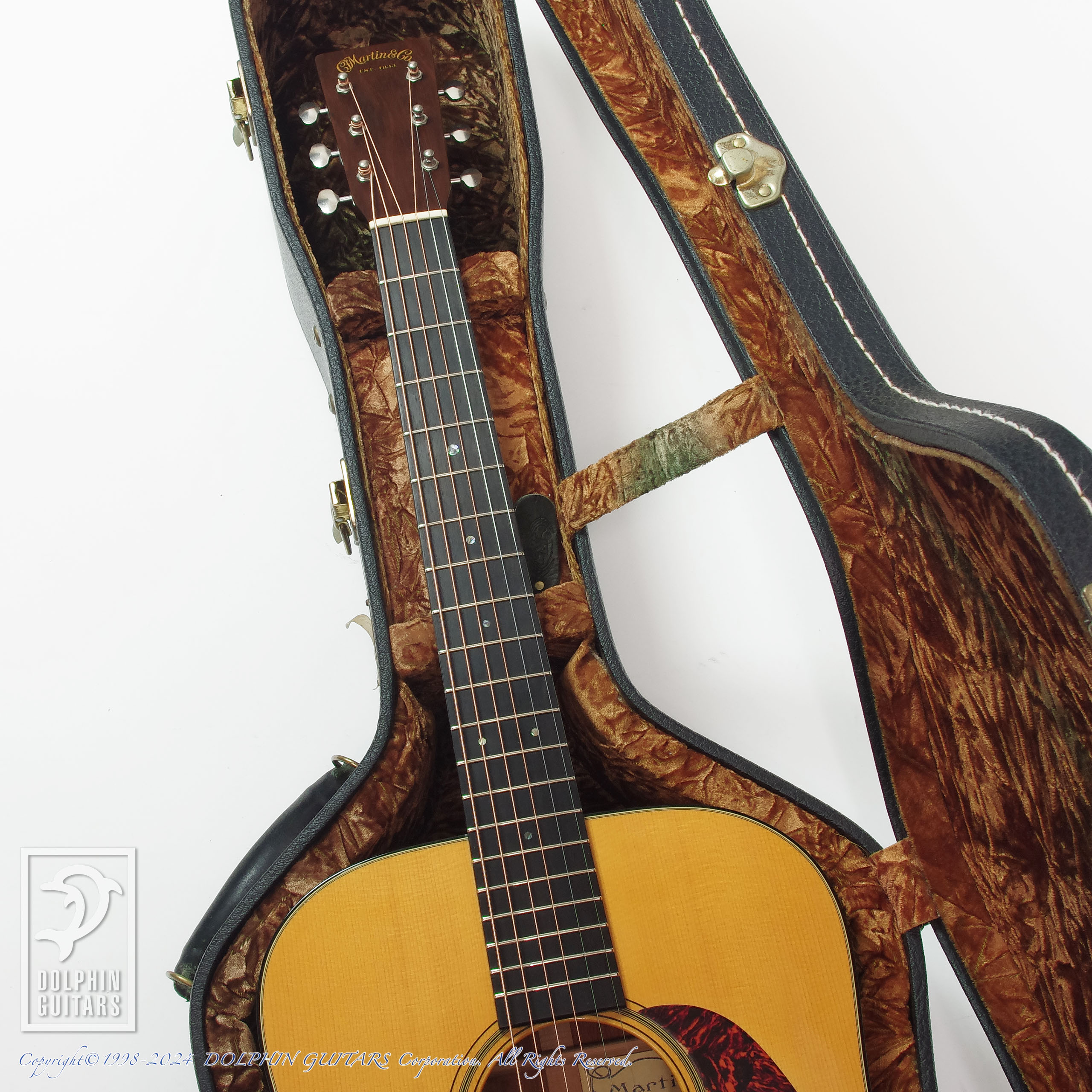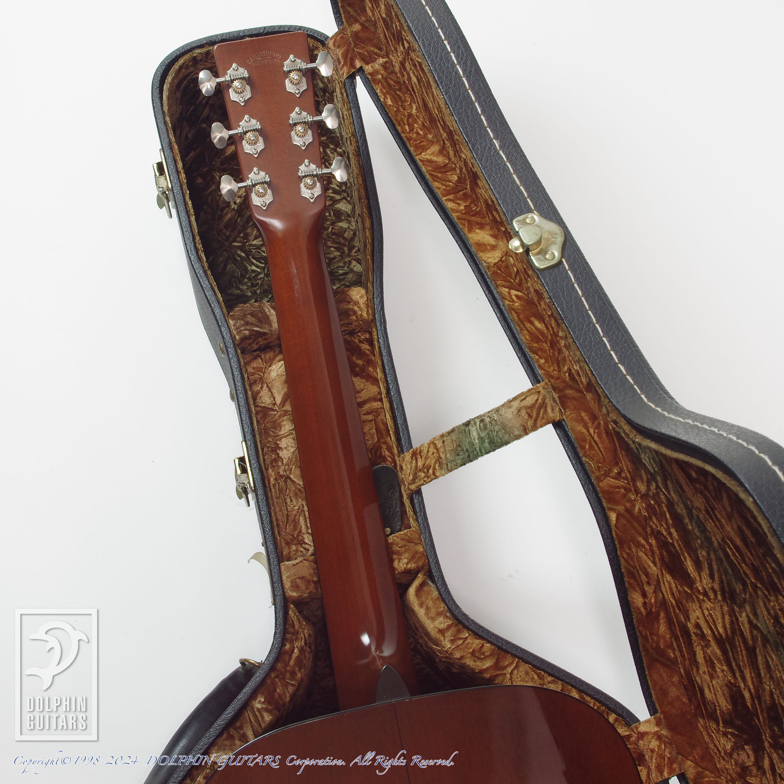 パッと見では目立つ傷もなく綺麗な外観ですが、バインディング剥がれの補修痕やバインディングの動きによって木材との段差が見られる箇所があり、この年代のマーティンでよく見られる動きであります。ケースはオリジナルの専用ハードケースが付属します。