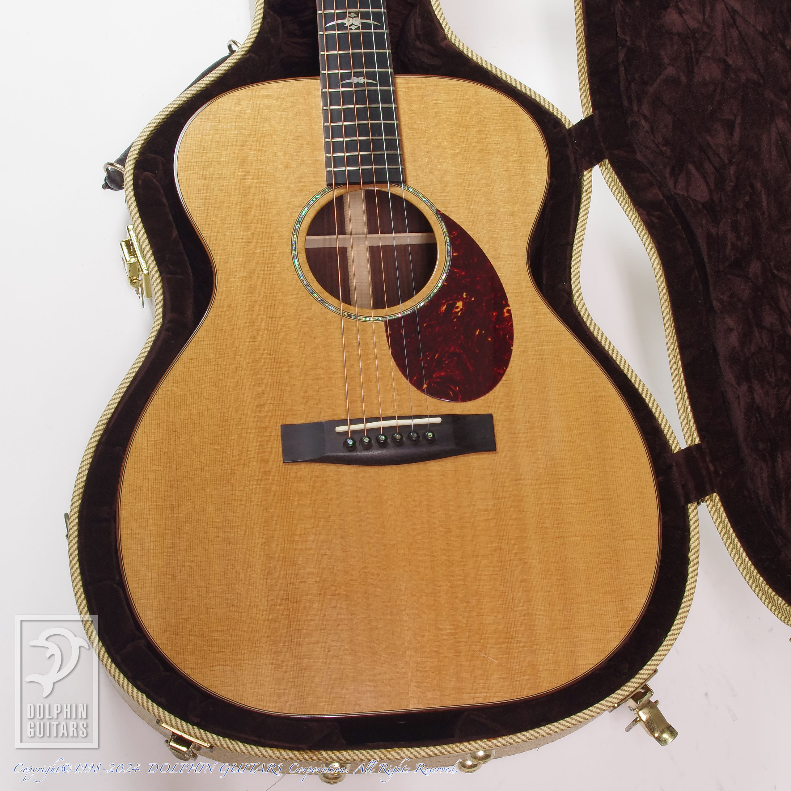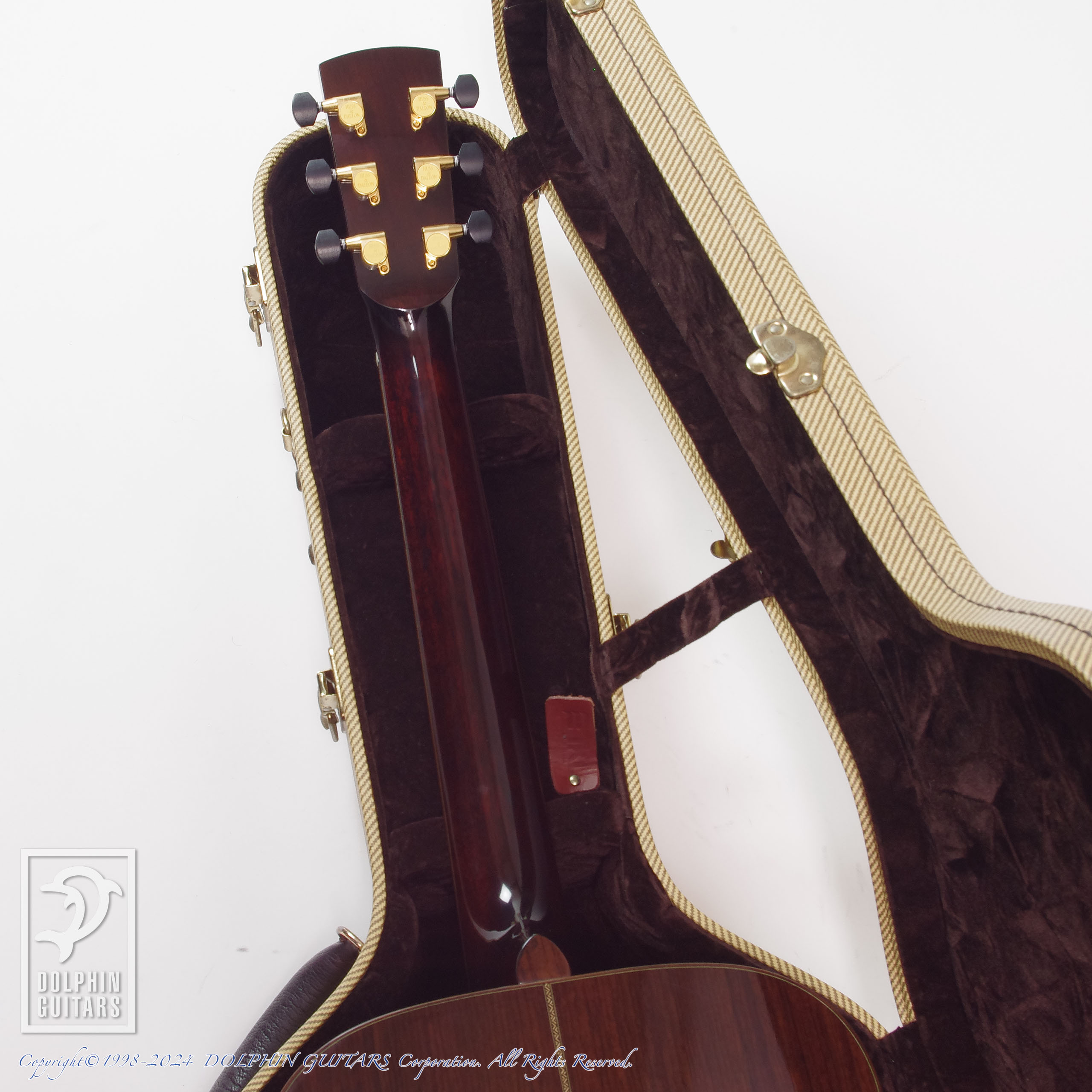 ギター本体は大変素晴らしいのですが、付属するオリジナル・ハードケースの内装にやや難がありまして、ギターを収納しているとボディサイド塗装面にベタつきが発生する箇所が2箇所ございまして、クリーナーを使用してすぐに拭き取ることができるのですが、収納する場合はボディにTシャツを被せることをお勧めいたします。この症状はケース内部に原因がありますのでギター本体は全く問題ございません。このベタつきの症状に関しましては保証対象外とさせていただきます。ケースなし、または別のソフトケースでのお渡しも可能です。詳細は東京店までお電話(03-6415-3580)にてお問い合わせください。