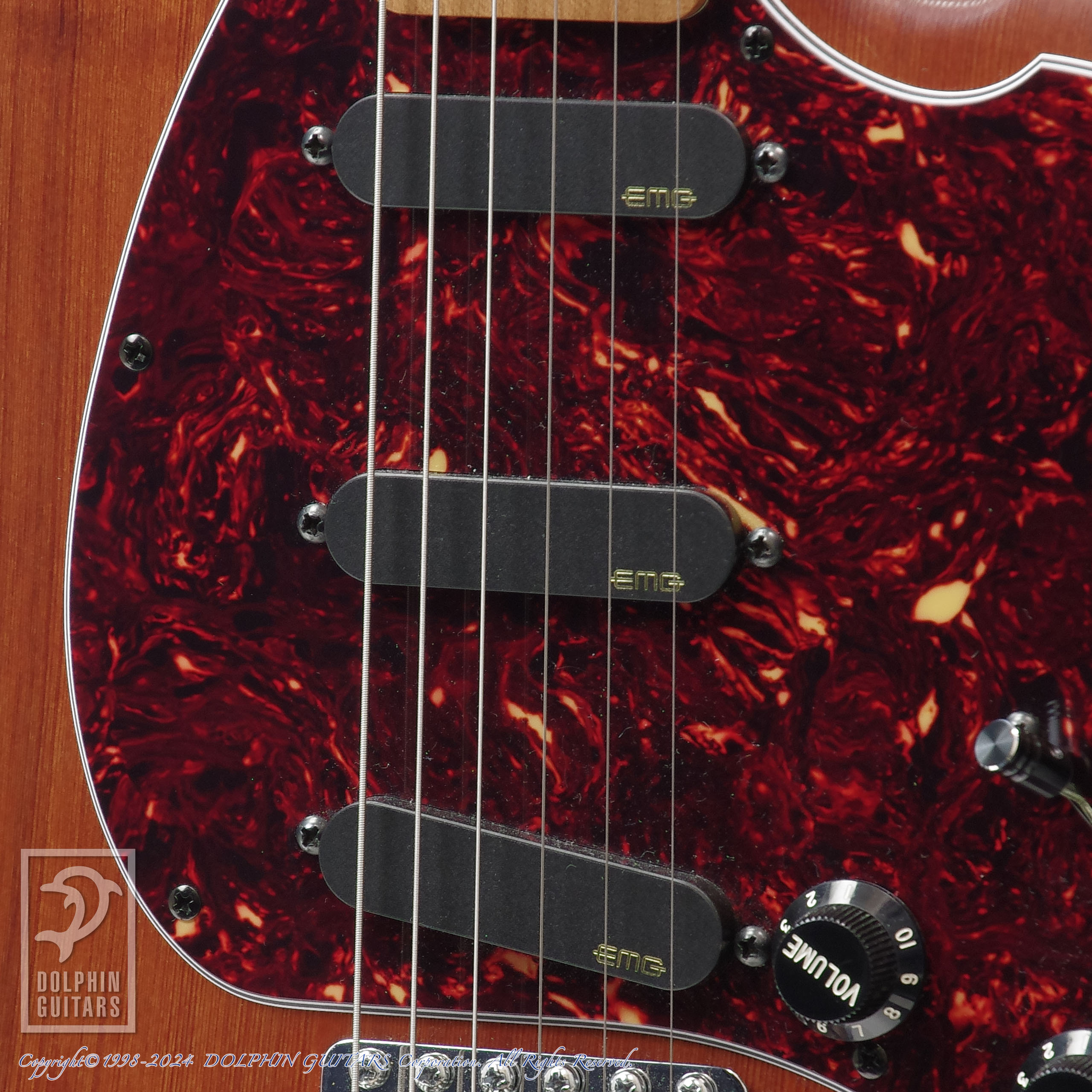 本器は日本初上陸となるストラトタイプのSMK (Redwood Body)。
