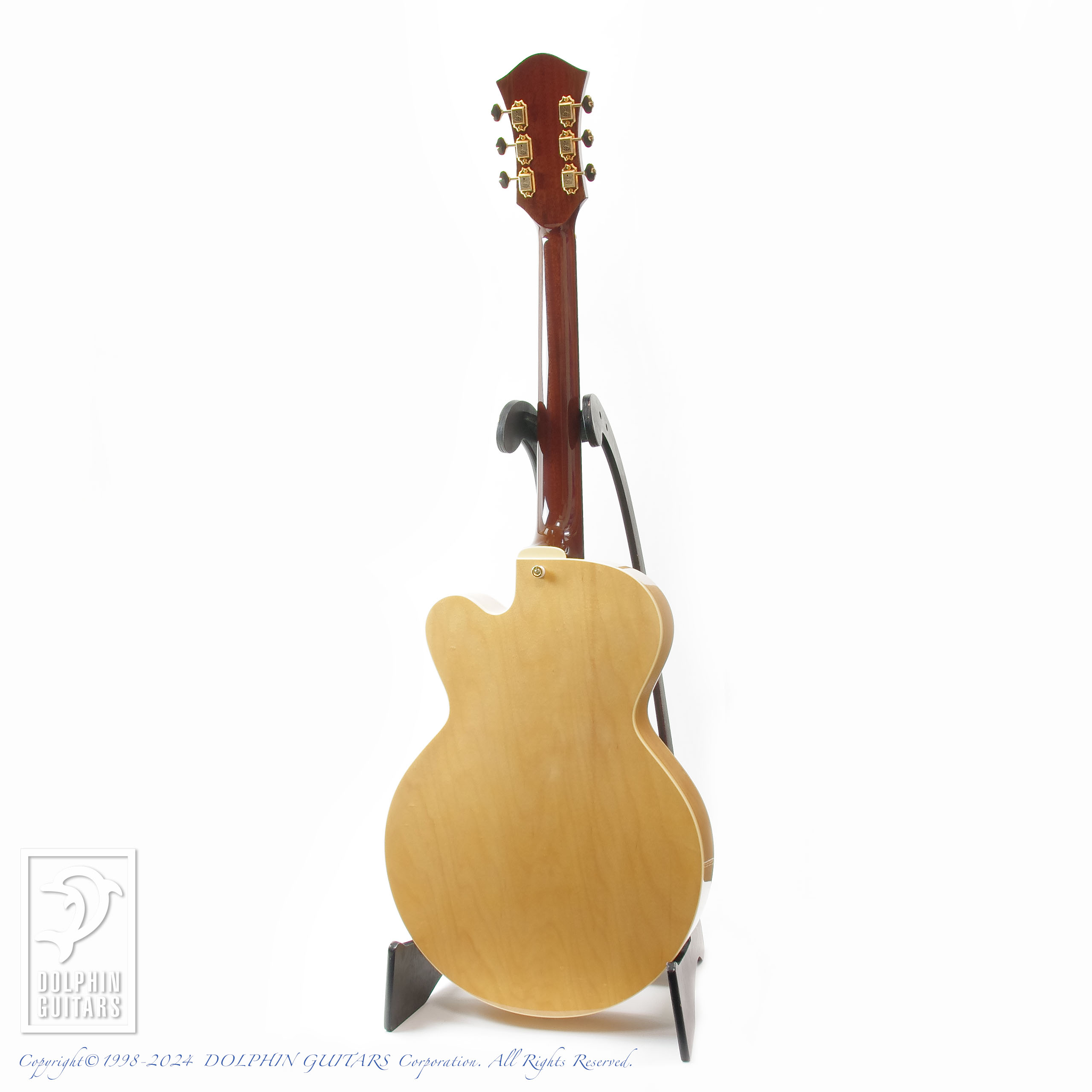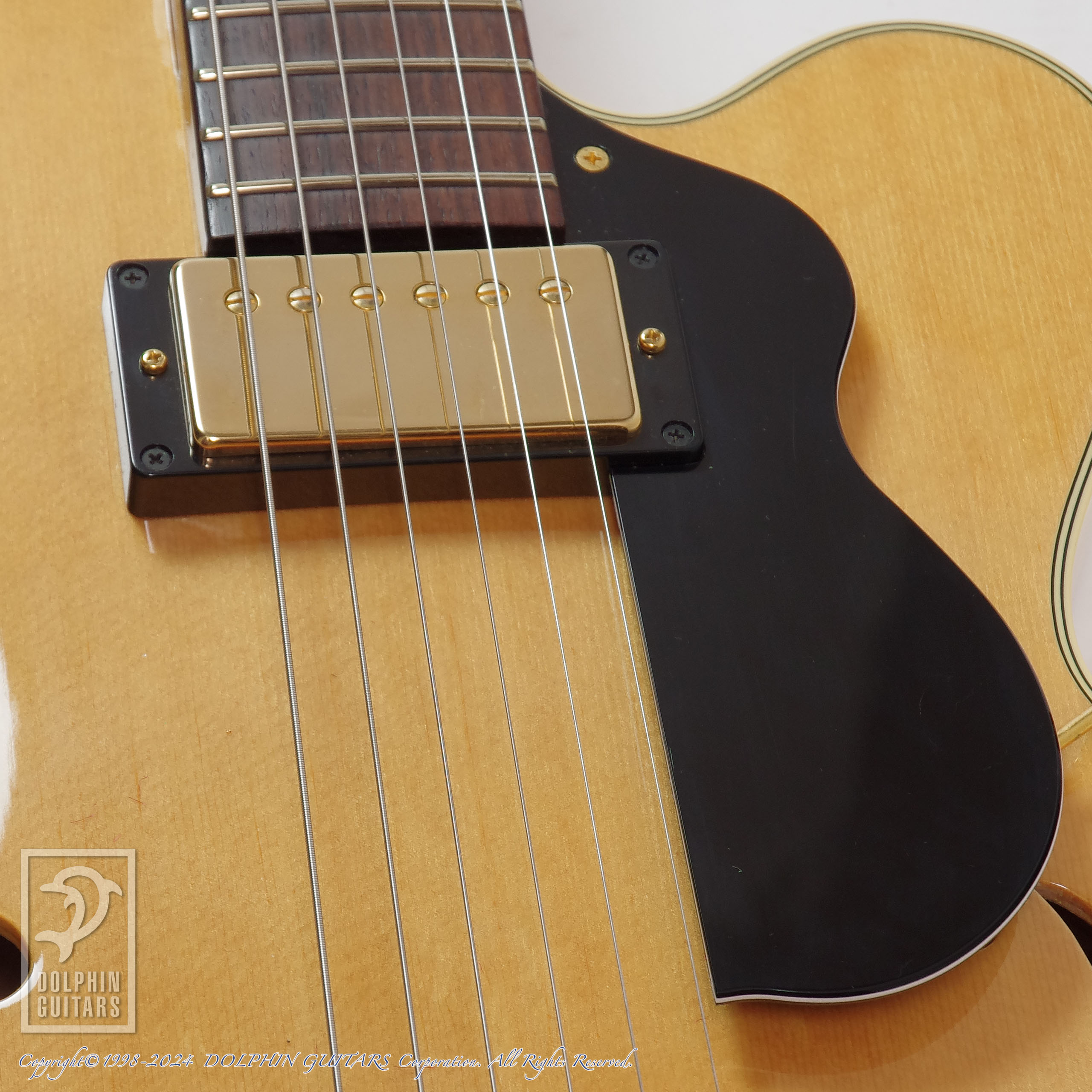 ピックアップはオーソドックスなフロント1ハムバッカーのスタイル。甘さの中に程よく芯があるサウンドは、ジャズはもちろん、弾き語りで使用しても面白いかも知れません。薄いボディ厚は取り回しが良いだけでなく、アンプで鳴らす際のハウリング対策としても優位性を誇ります。