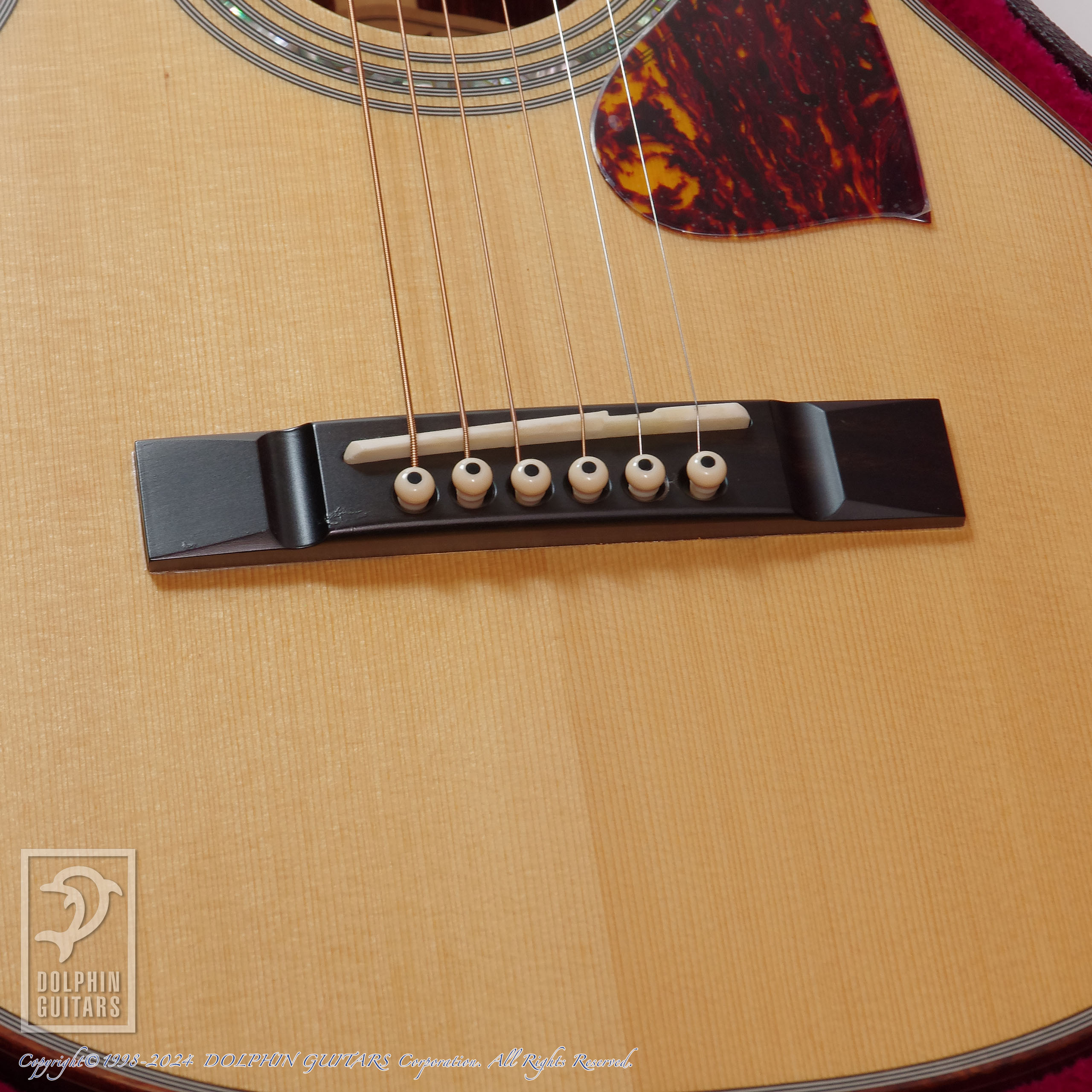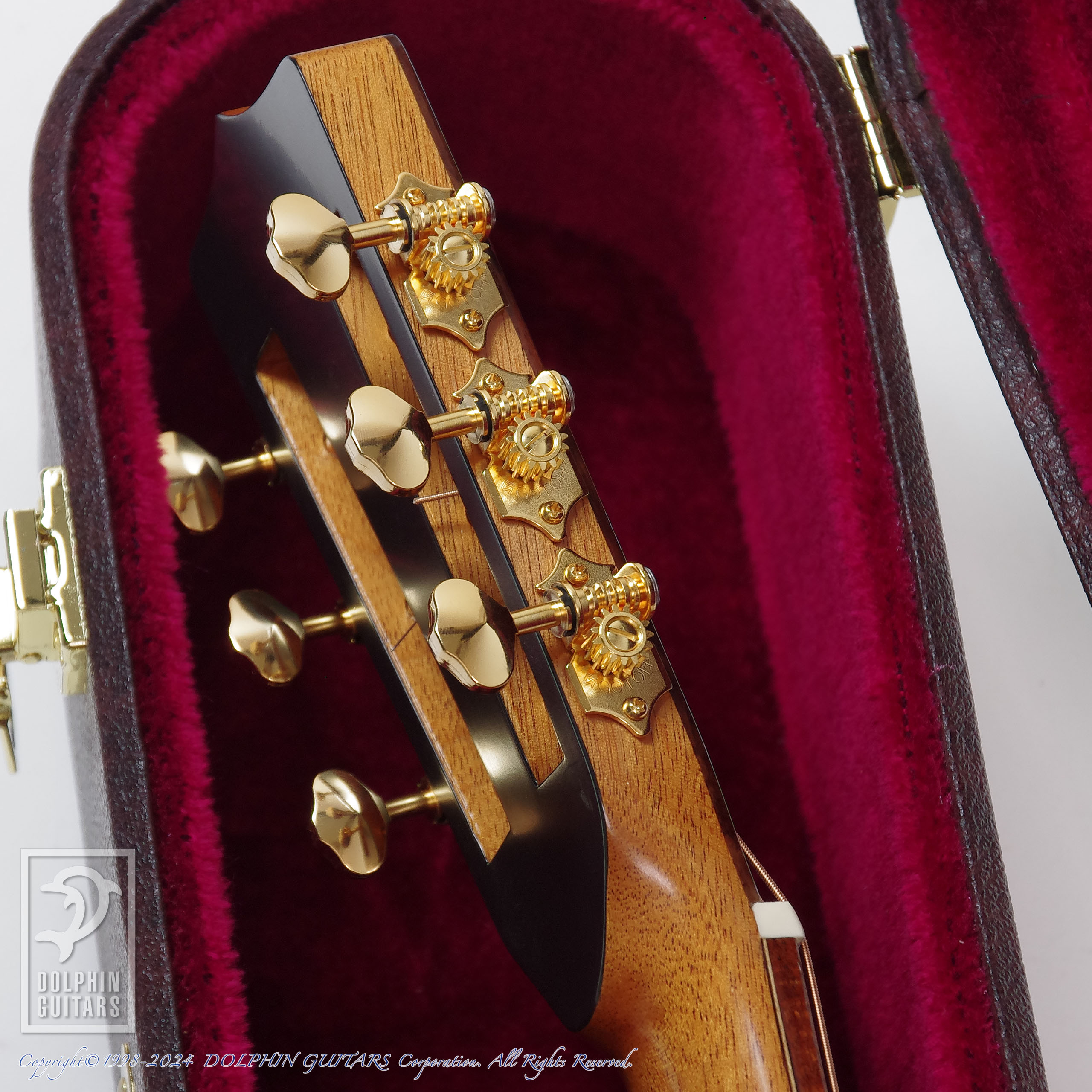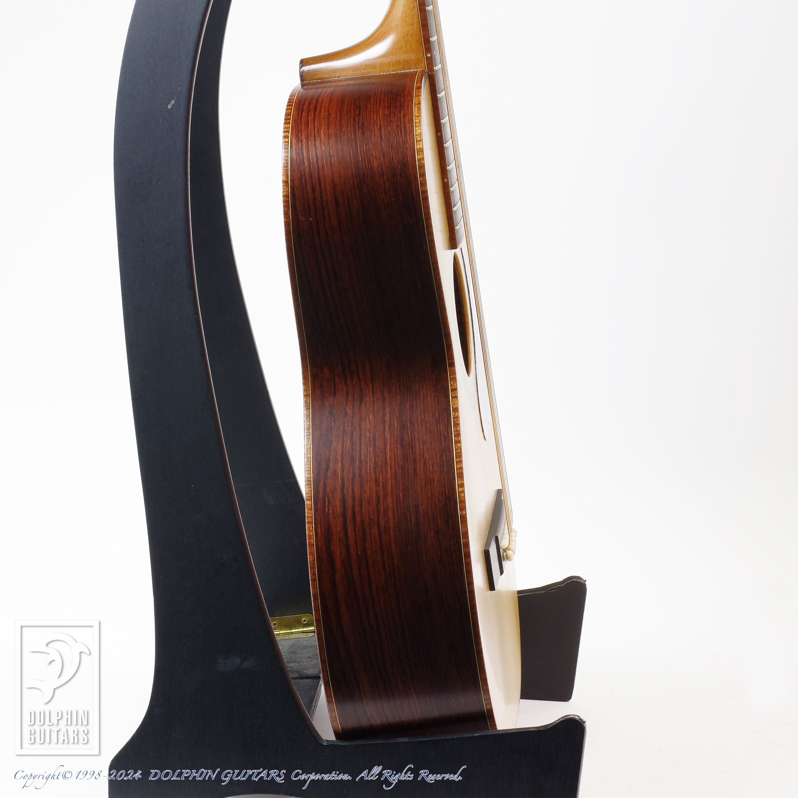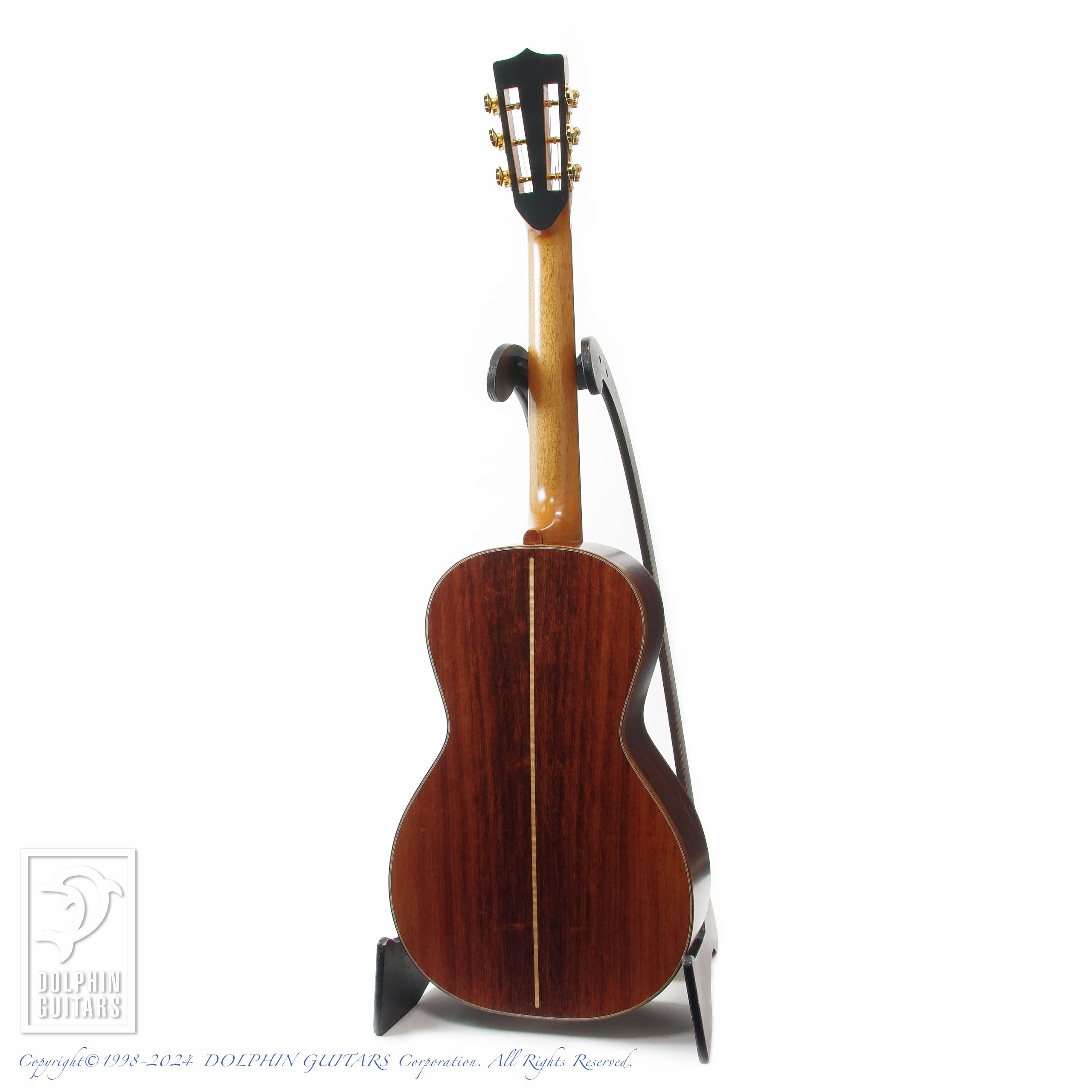 シングルオーよりも小振りなサイズ2はマホガニーボディが主流と言えますが、本器は重厚な音響特性を持つホンジュラスローズウッドを採用し、重心の低いドッシリとしたサウンドを聴かせ、パーラーモデルとしては非常に個性的な逸品であります。