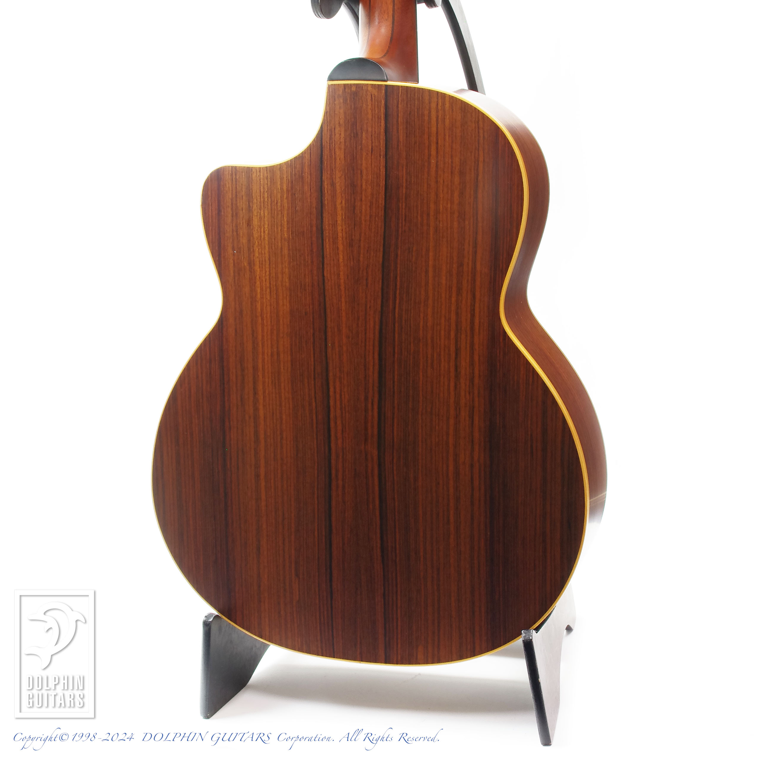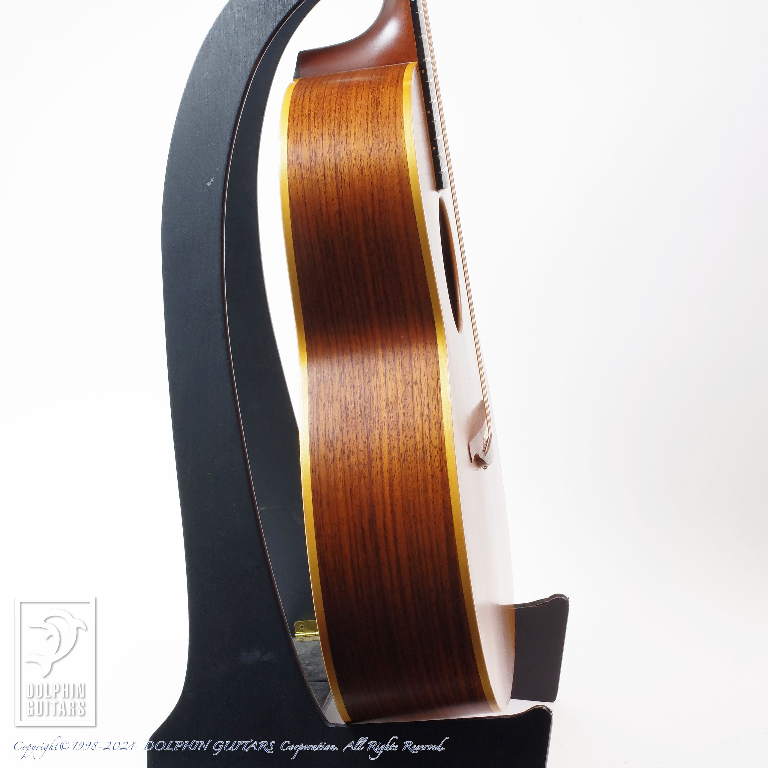 スプルーストップにインディアンローズボディの32シリーズ、そしてFボディのカッタウェイはローデンのラインナップの中で最も人気のモデルとも言えます。本器は製作されてから30年以上が経過し、サウンド面でも経年を感じさせるトーンであり、ギラついた高域は感じられず、ミッドレンジが効いた1・2弦であります。低音弦の厚みも感じさせ、表現力の高い素晴らしいサウンドです。