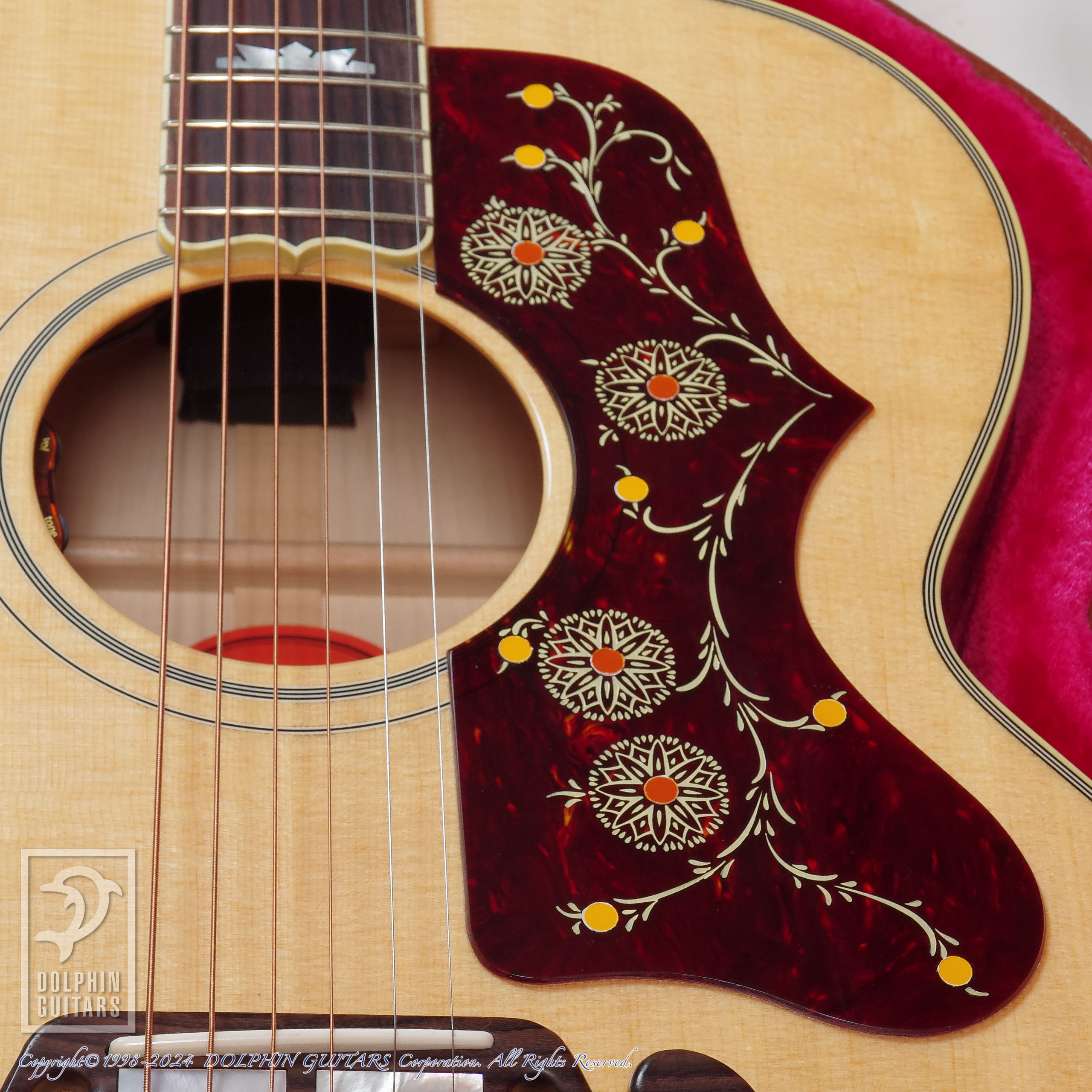 大型ボディ、花柄ピックガード、ムスタッシュ(ひげ)ブリッジが特徴的な『フラットトップの王様』という異名を持つスーパージャンボ SJ-200 Original。