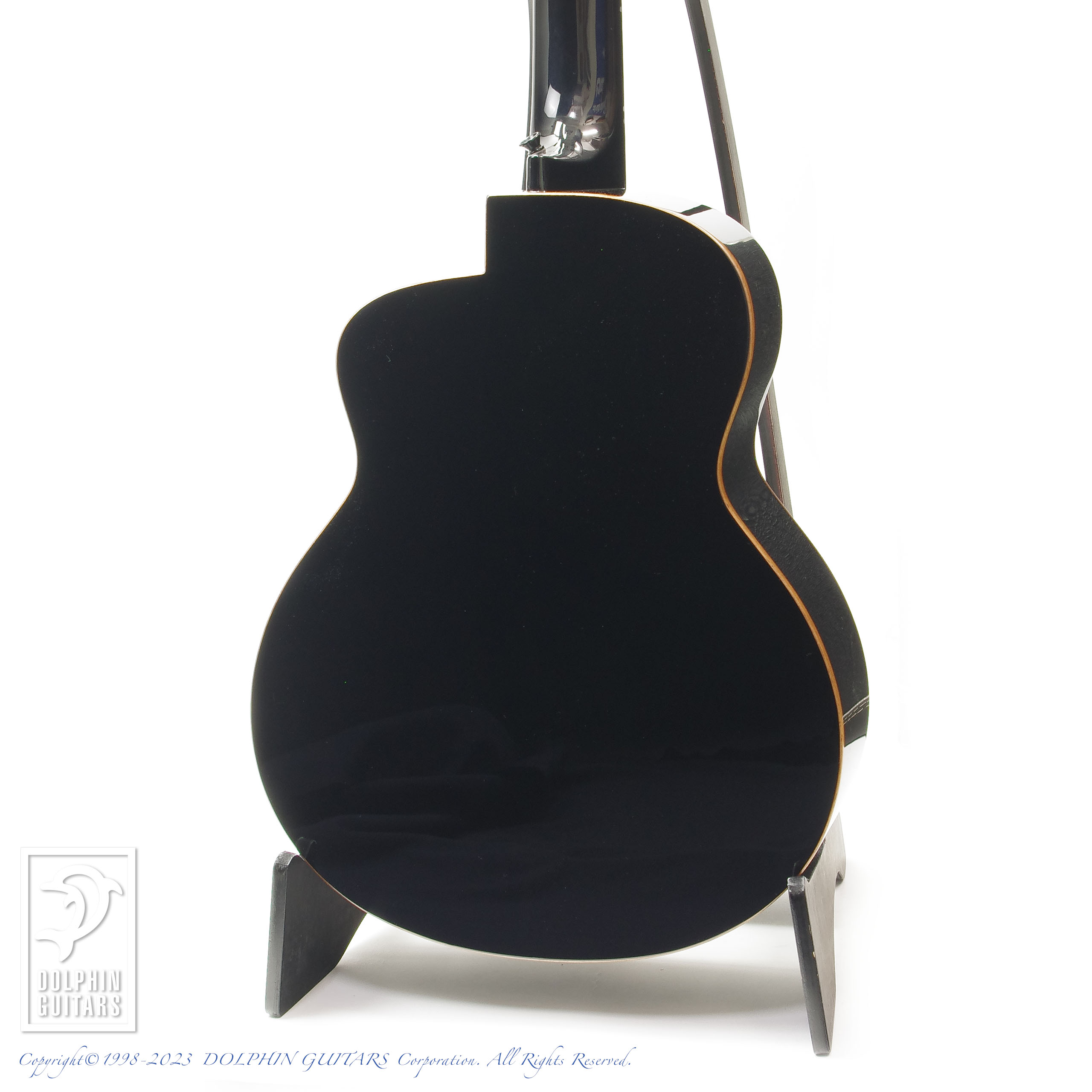 メイプルをシダー材の表面に配した美しいギター。シースルーブラック塗装により、杢目が浮かび上がるような幻想的な印象を与えます。サイド&バックはほのかにラメが輝く凝った仕様です。コンパクトな見た目とは裏腹にディープなトーンが楽しめます。