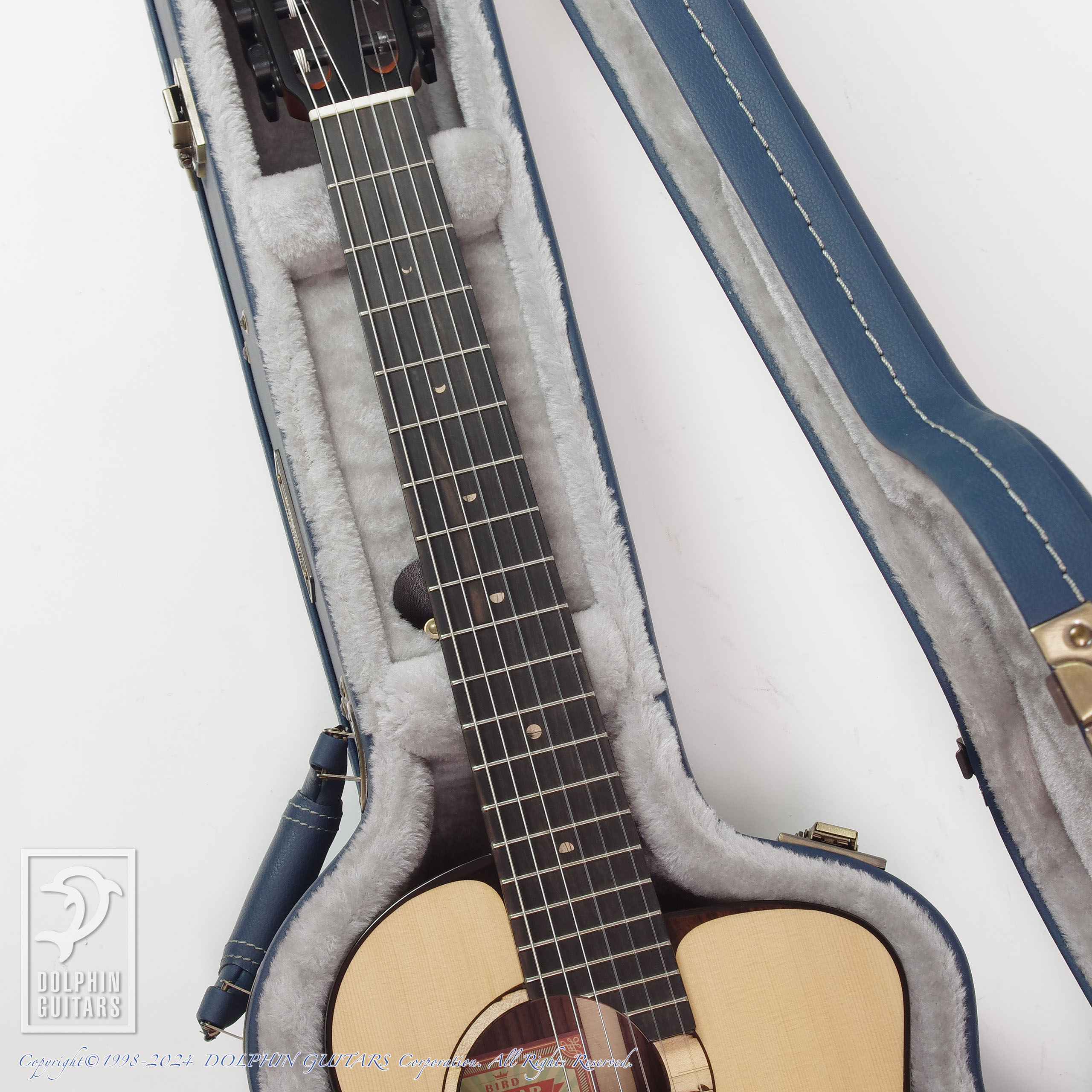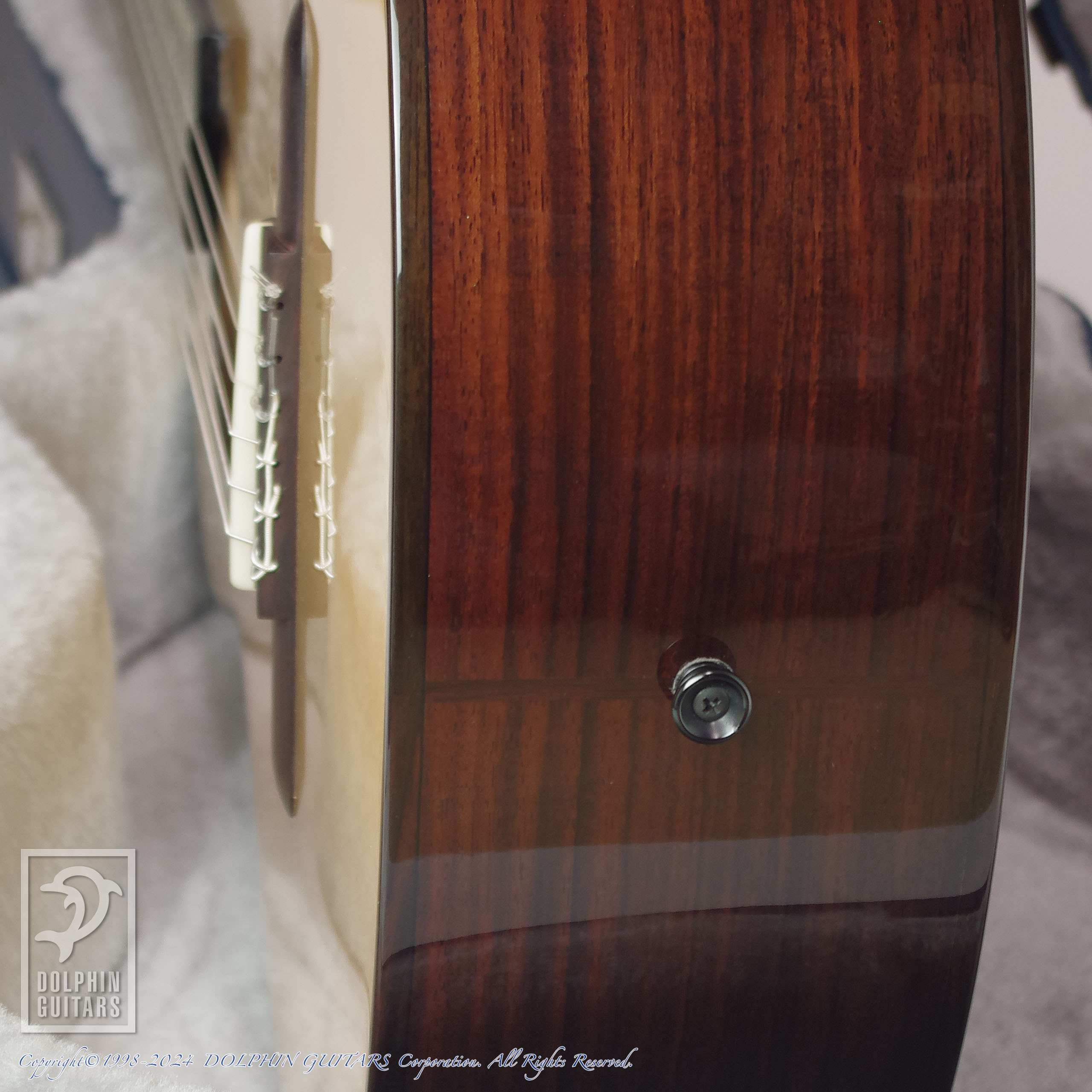 ネックシェイプはCシェイプ、厚くもなく薄すぎずといった形状です。指板はクラシックギターと同じくフラットの形状であり、ネック内部にはアジャスタブルロッドを採用し、僅かなネックの動きにも即対応できる点も大きなポイントです。弦はダダリオ EJ45(ノーマルテンション)を使用。