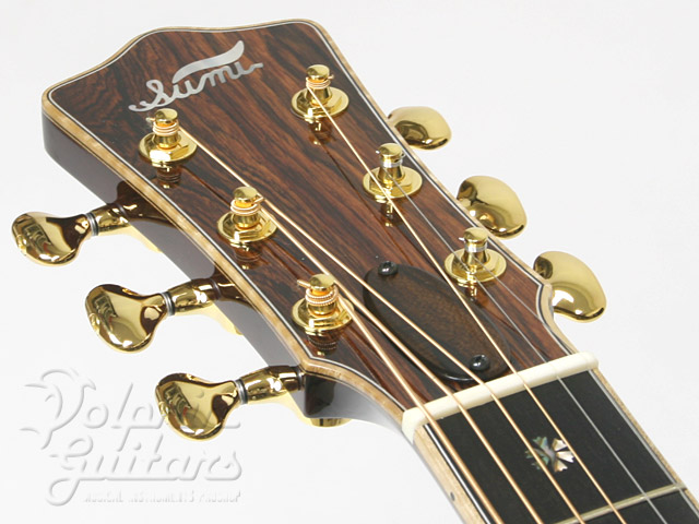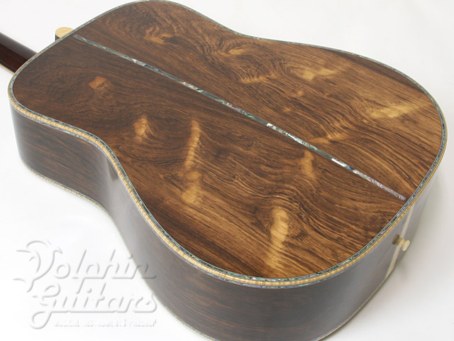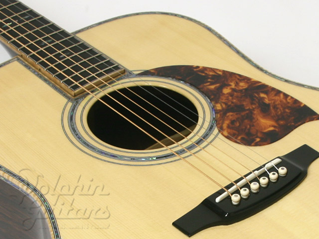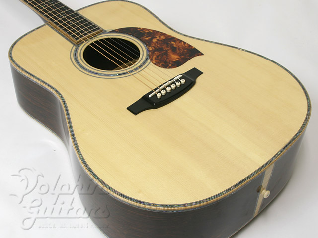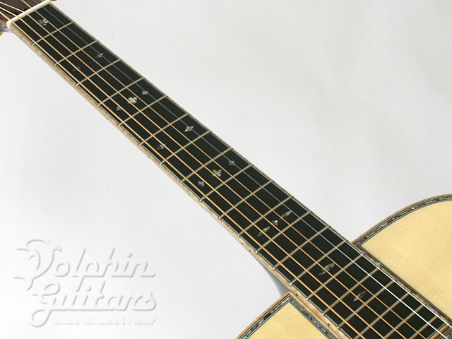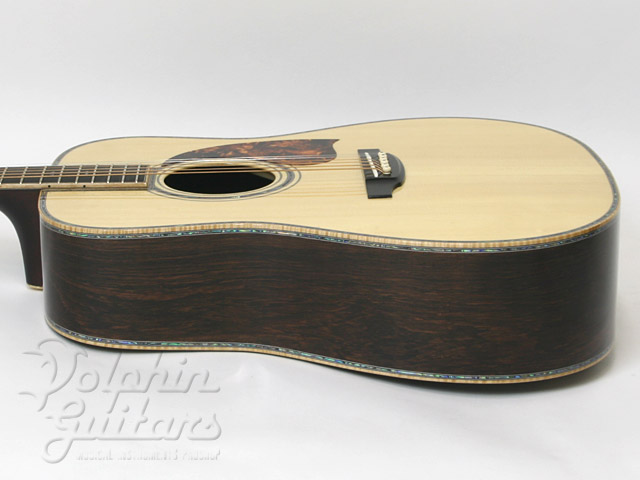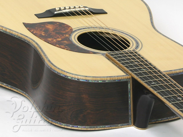 赤エゾマツ・トップ、ホンジュラス・ローズウッド・サイド&バック、マホガニー・ネック、キャッツアイ&スノーフレイクス・インレイ・エボニー指板&駒、アバロン・トップ、バック&サイド・パーフリング、カーリー・メイプル・ボディーバインディング、ゴトー・ゴールド糸巻き。