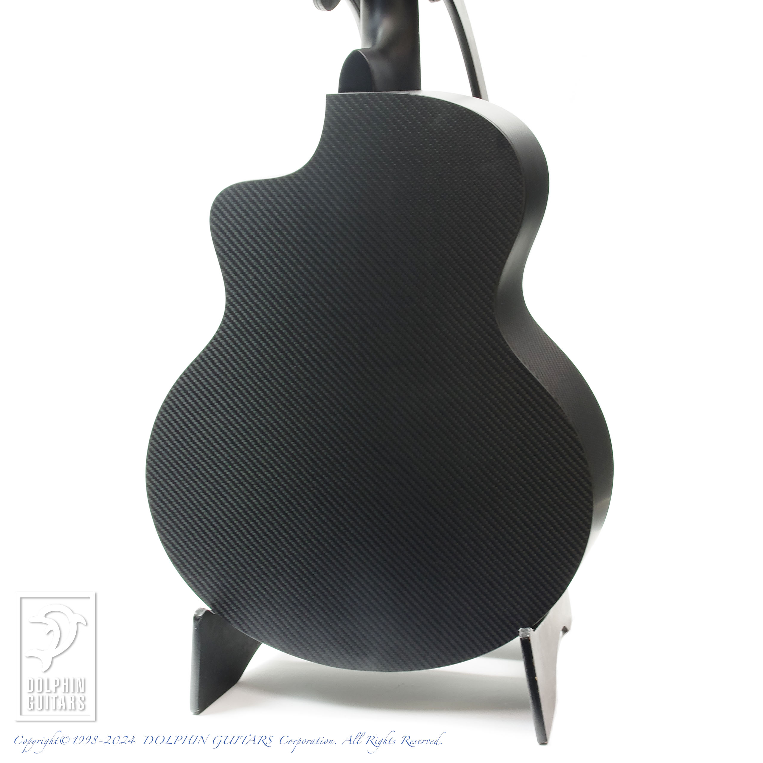 ボディ材に用いられるカーボン材は新開発の 3Kカーボンファイバー を使用。振動減衰が少なく、これにより反応が速くクリアなサウンドを聴かせます。また、サウンドを大きく左右するブレイシングにはカーボンではなく手作業にて削り出されたスプルース材を採用し、いわゆるカーボンらしさだけにとどまらないサウンドクオリティを実現しています。