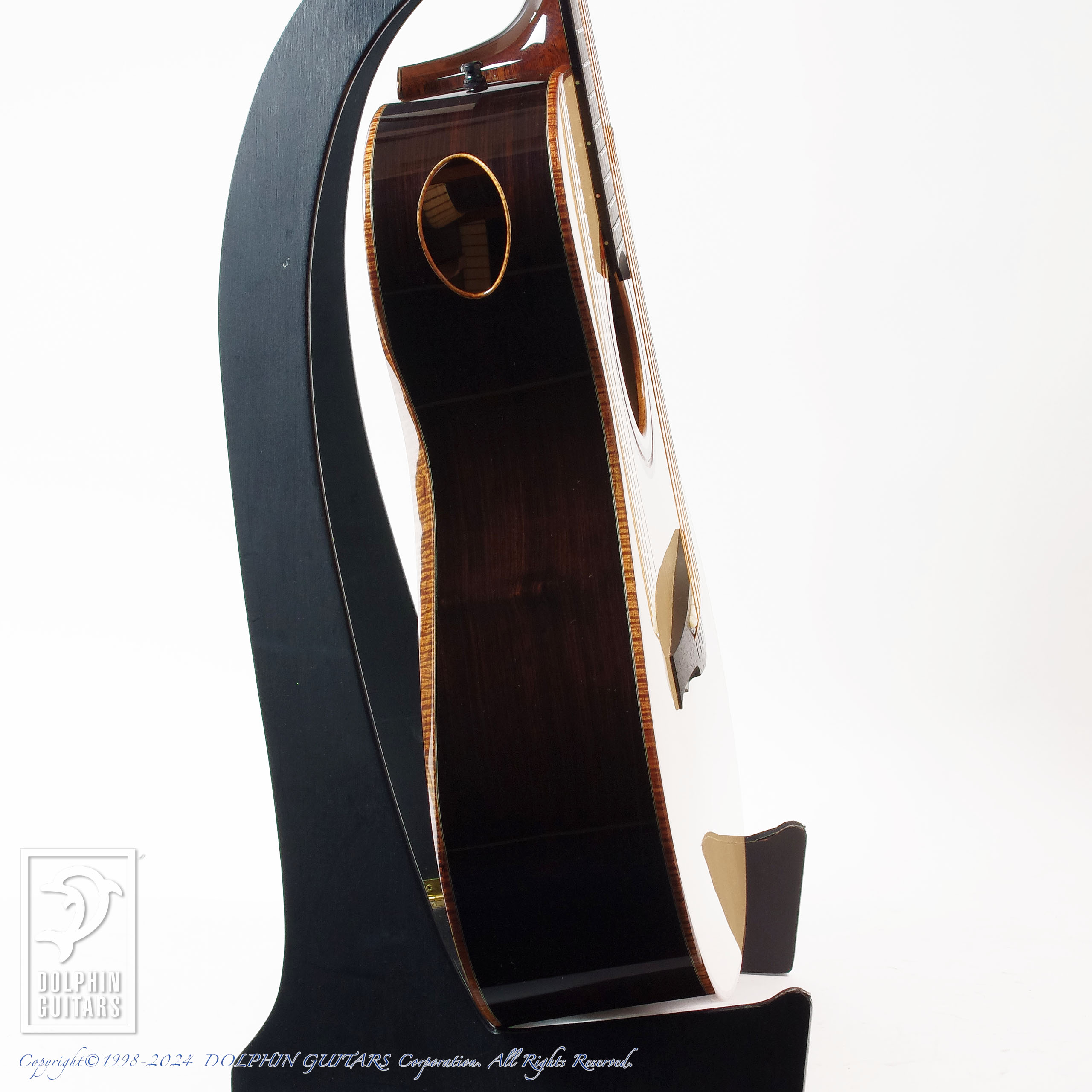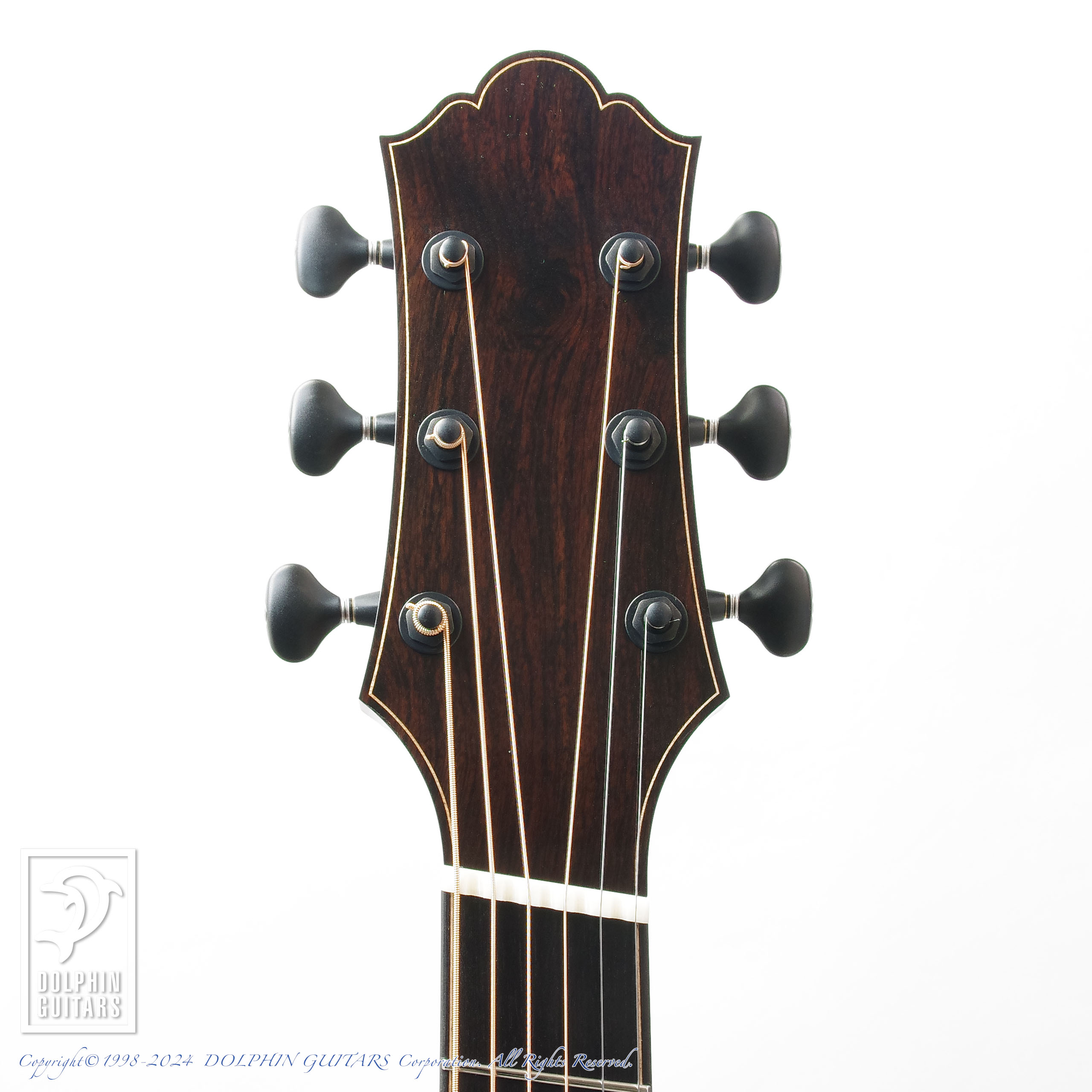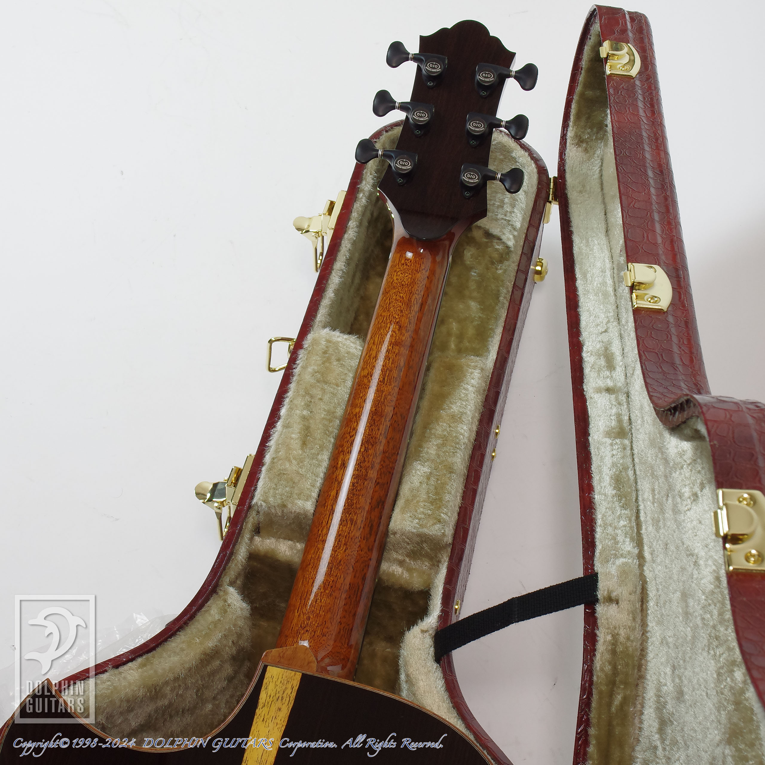 トップにはジャーマンスプルース、サイド&バックにアフリカンブラックッドを採用することで、重厚なサウンドを聴かせる本器。容積の大きいドレッドノートボディに、ファンフレットにより6弦上では666.8mmにもなる弦長も加わり、その圧巻のサウンドはまさに絶品。