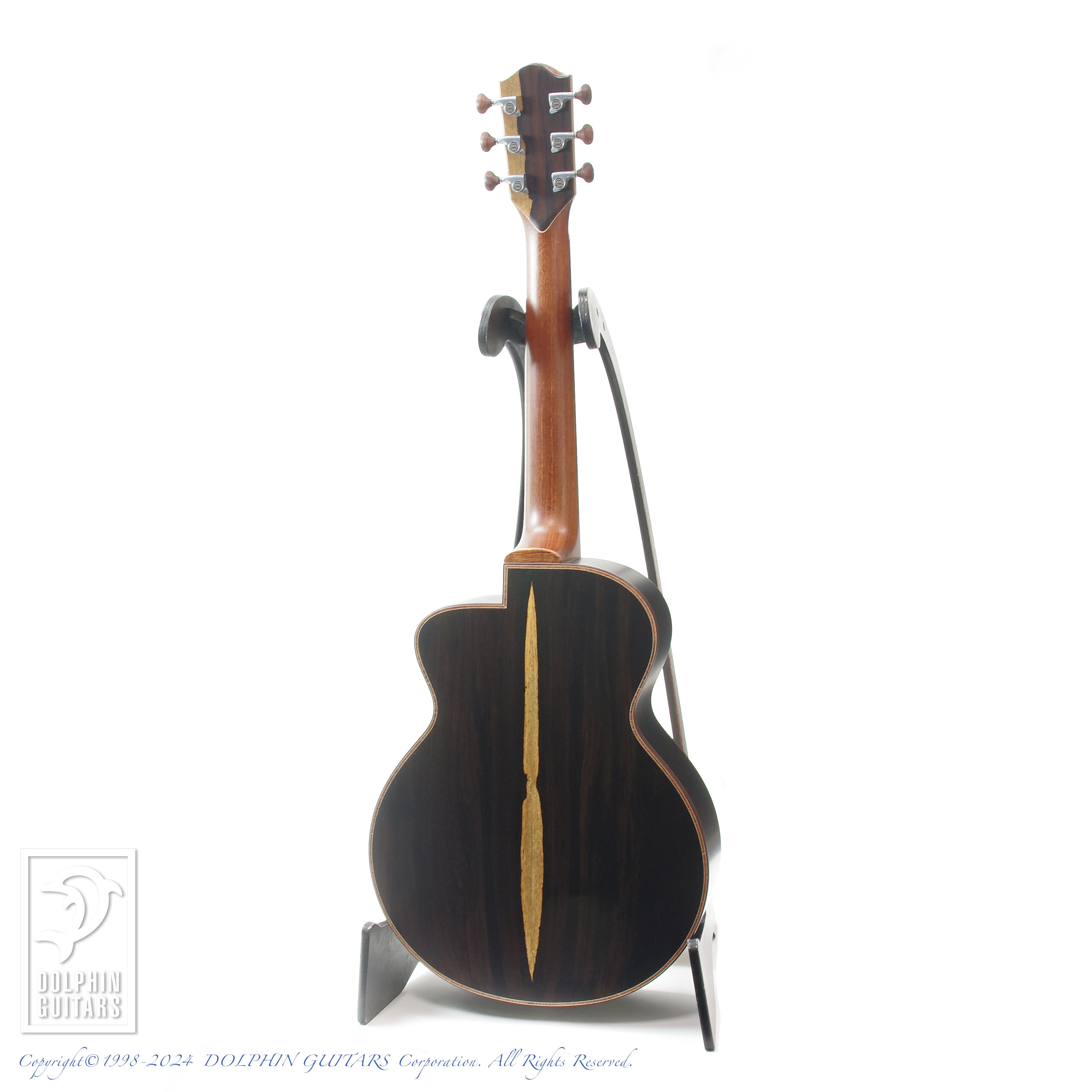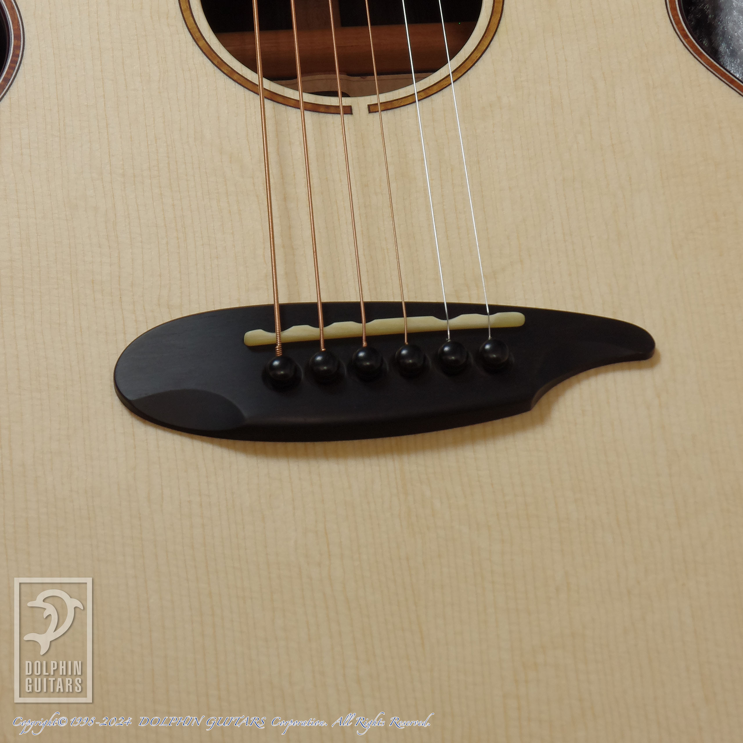 ジャマーンスプルース材の艶やかさ、ブラックウッド材の音圧とボディサイズを感じさせないリッチな音量、それぞれの木材の特性がバランスよく耳障りの良い音色を奏でてくれます。