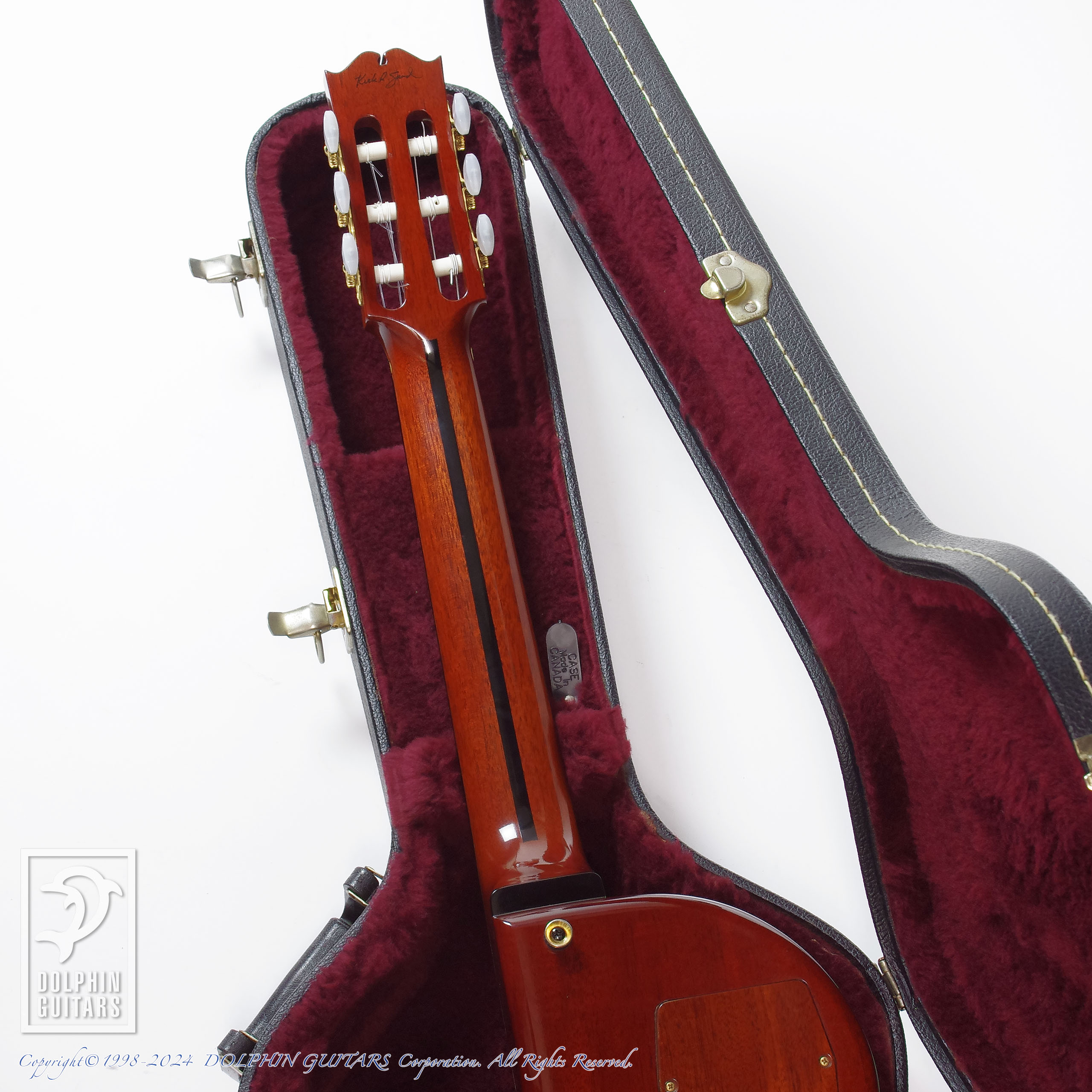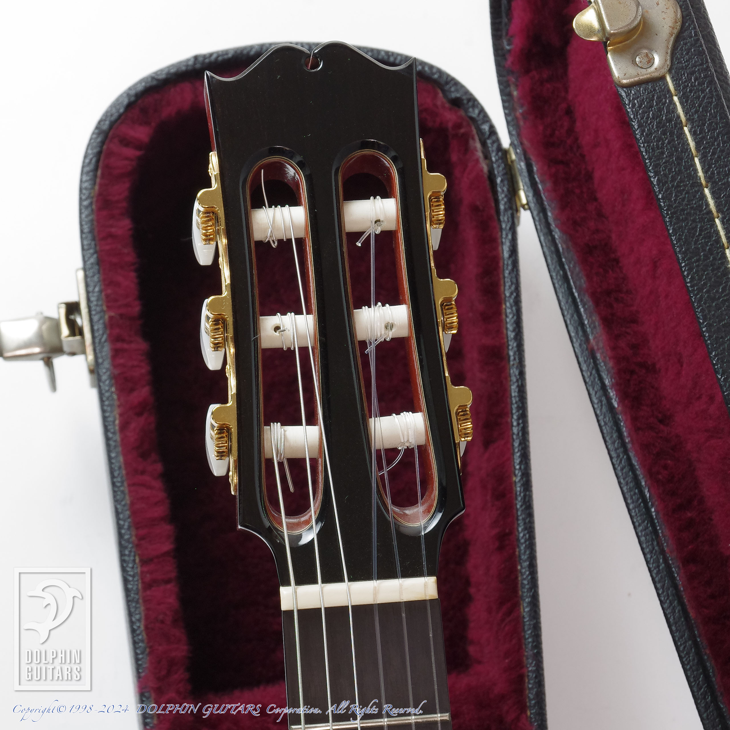 コンディションとしましては打痕や凹み傷は見られますが、ダメージの大きい箇所や修理が必要な箇所もなく、このまま安心してお使いいただけます。ネックの反りは見られず、弦高は6弦12F 2.5mm / 1弦 2.0mmと、ナイロン弦ギターとしてはのかなりローアクションセッティングとなっております。ケースはオリジナルの専用ハードケースが付属します。
