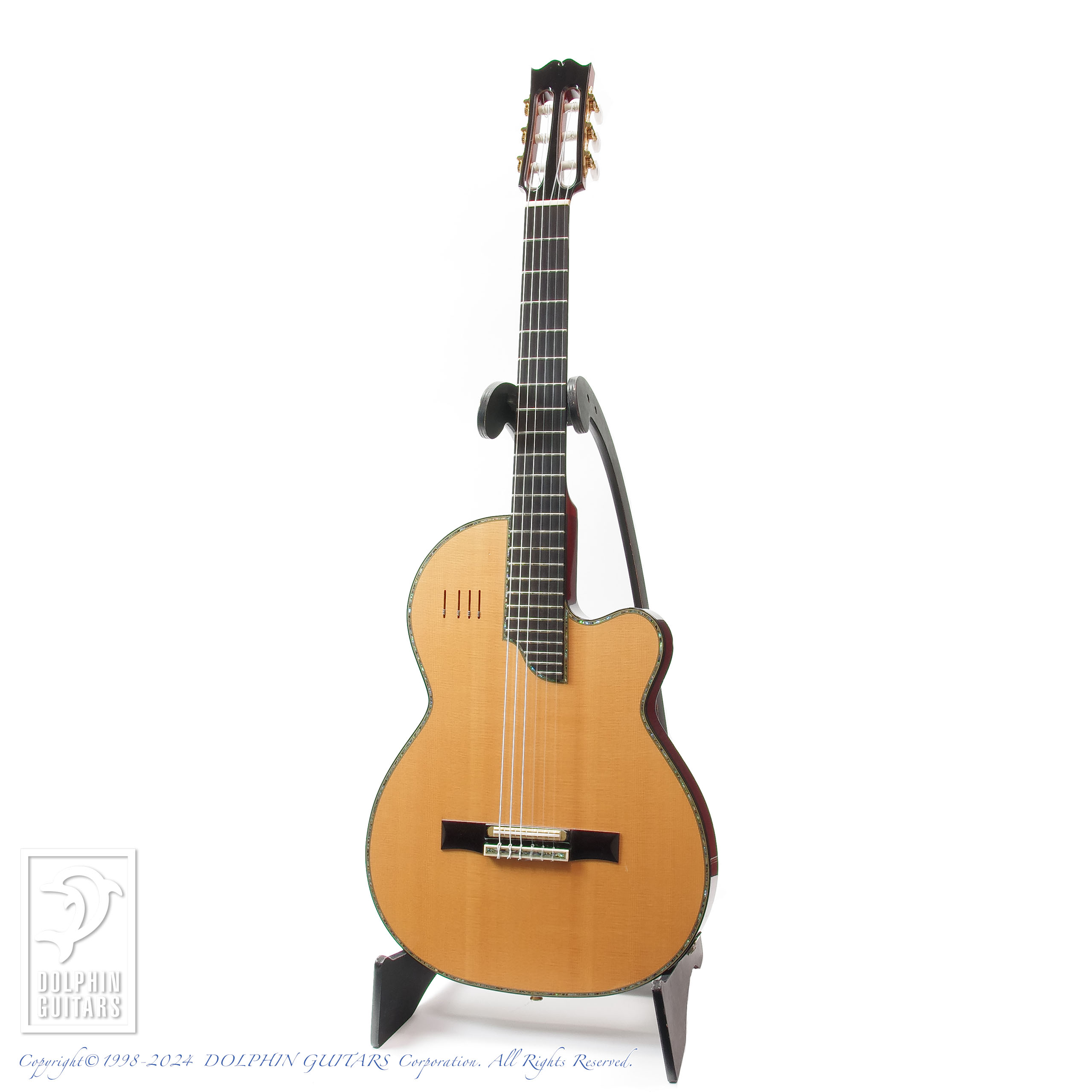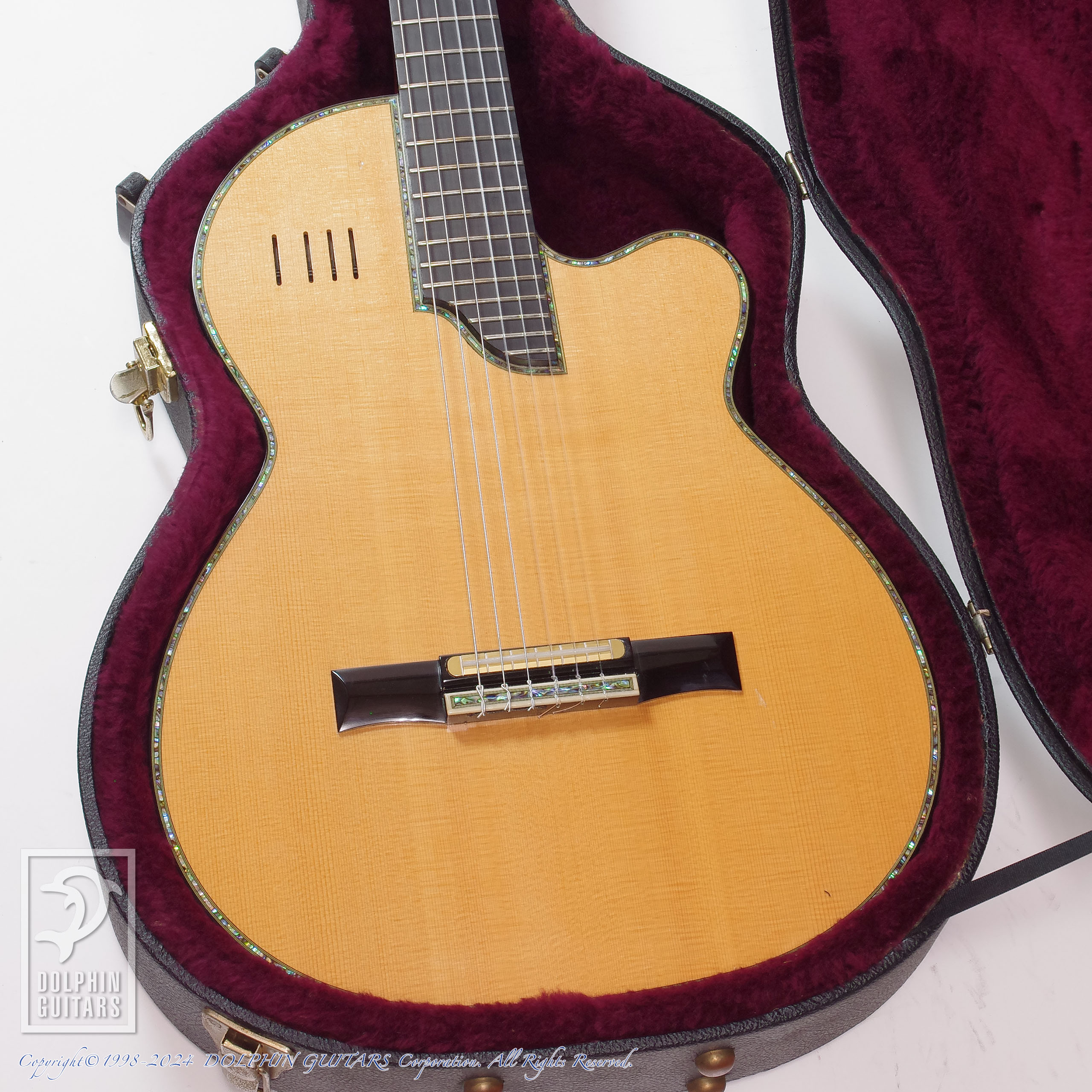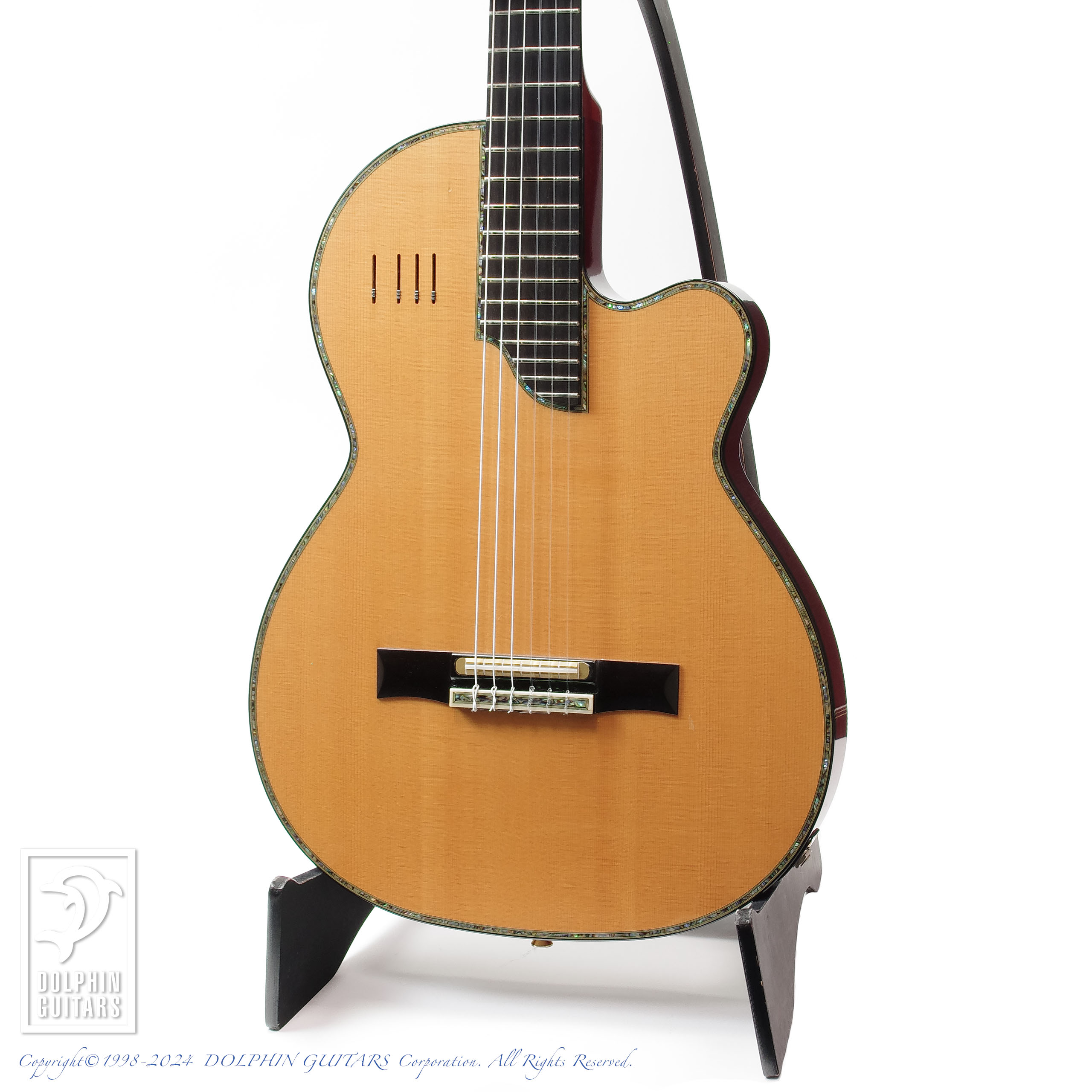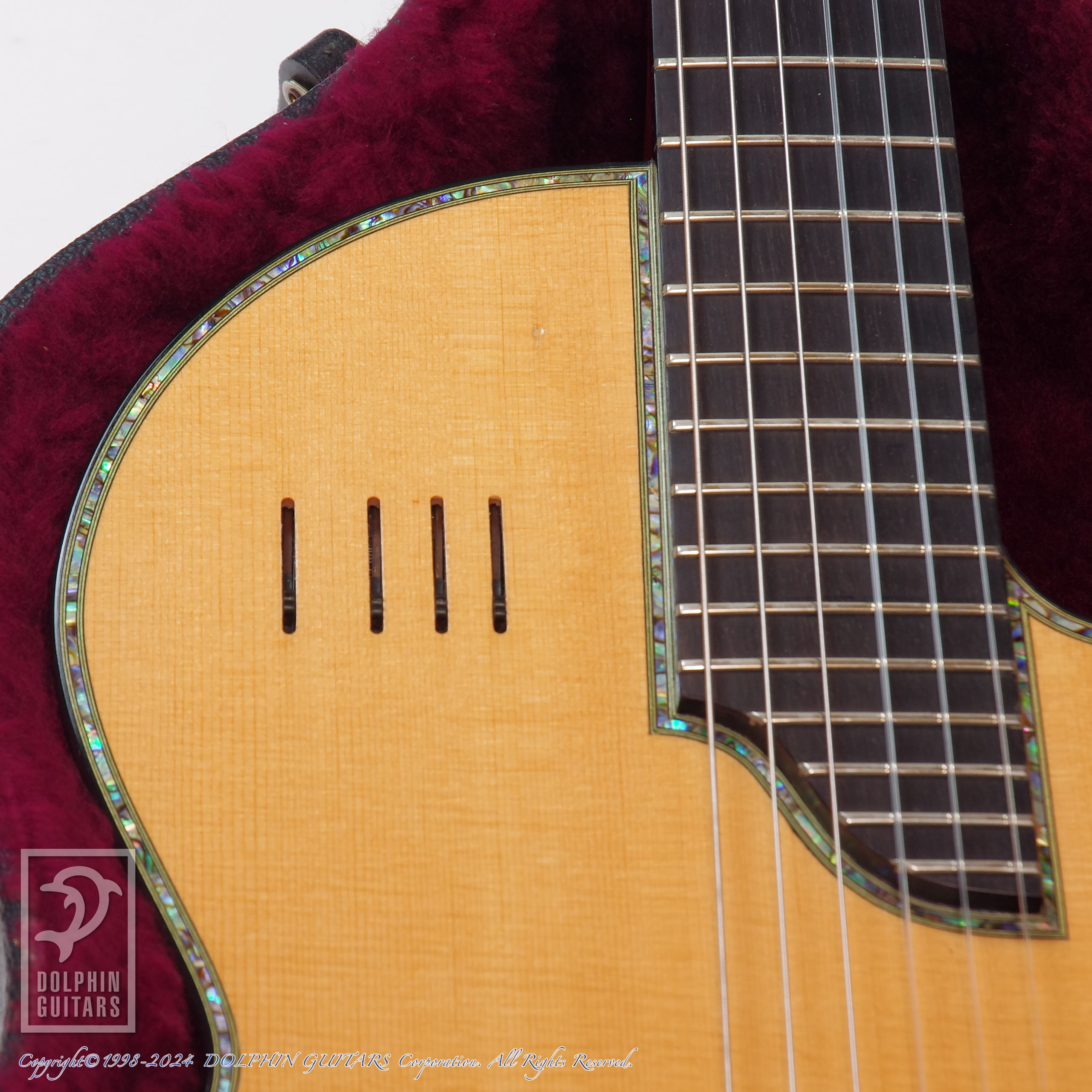 サウンドホールを持たない本器は、豊かな鳴りを感じつつもよりスッキリとしたキレのあるサウンドが特徴で、一般的なナイロン弦ギターでは決して味わえない個性を持ちます。ハウリングに強く、バンドアンサンブル時にも威力を発揮します。