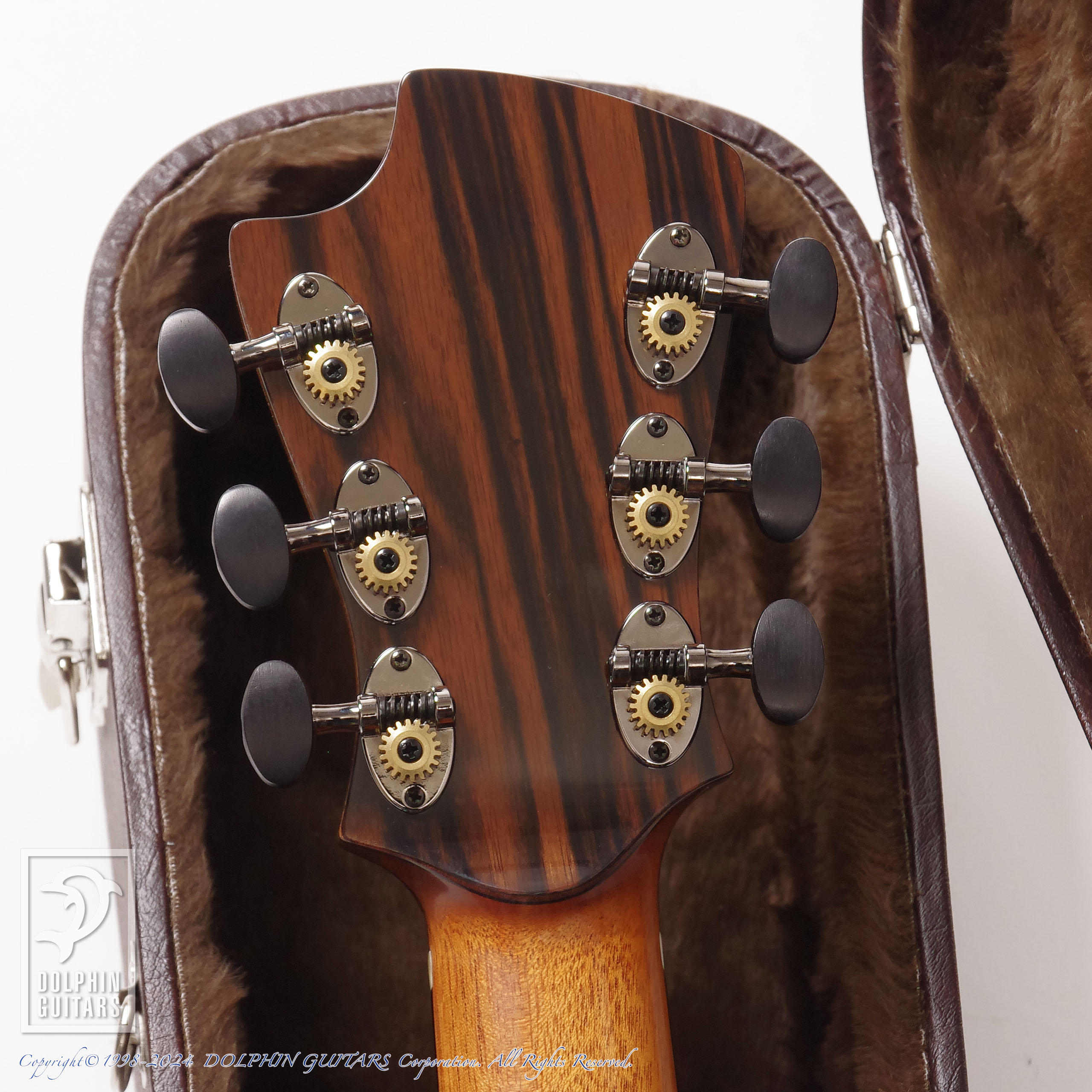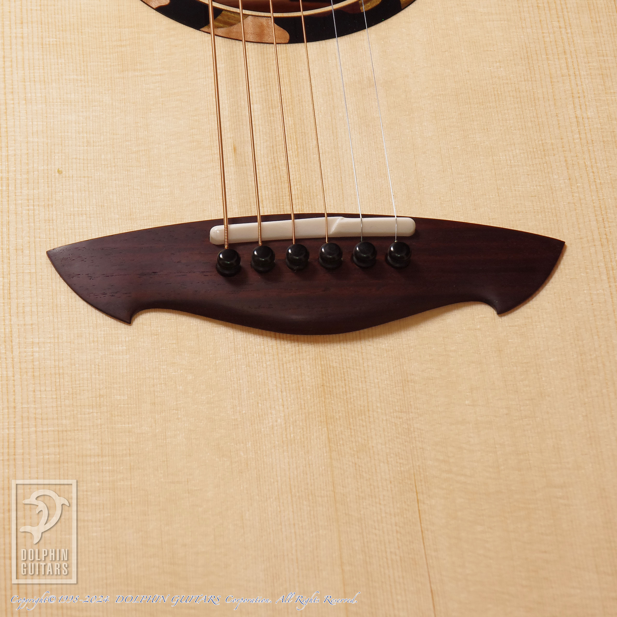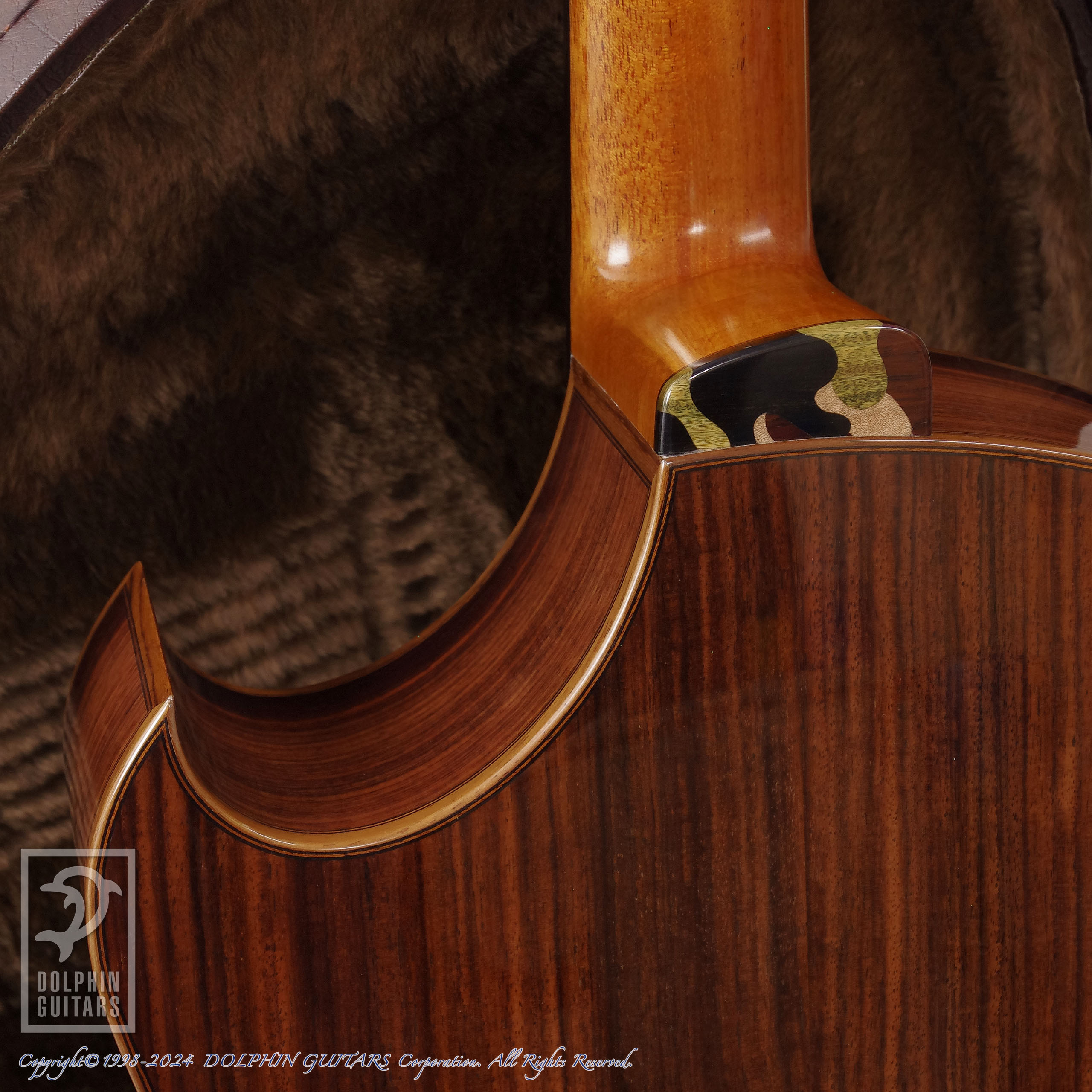 薄手のトップ材を支えるブレイシングはラティス構造を採用。トップ面に安定性と強度をもたらしつつも、容積の大きいボディをしっかりと鳴らし切るサウンドのラウドさと、細やかなタッチの差も顕著に現れる表現力の高さを感じさせます。