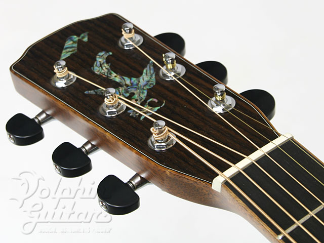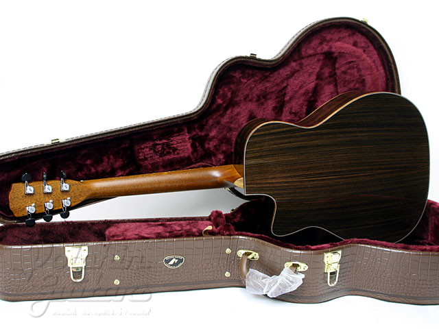 旧モデルと異なるのは、ブレイシング、ヘッド・指板インレイ、付属のケースもワニ皮風の高級ケースとなっています。