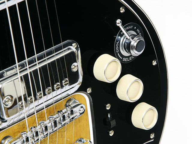 レトロ感溢れるビジュアルを持ちながら、リア・ピックアップにはタップスイッチも装備し、クランチなバッキング・サウンドから、フロント・ピックアップによるジャジーなサウンドまで想像以上の多彩なサウンド・バリエーションを持っています。