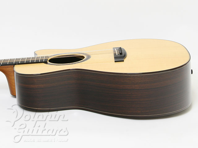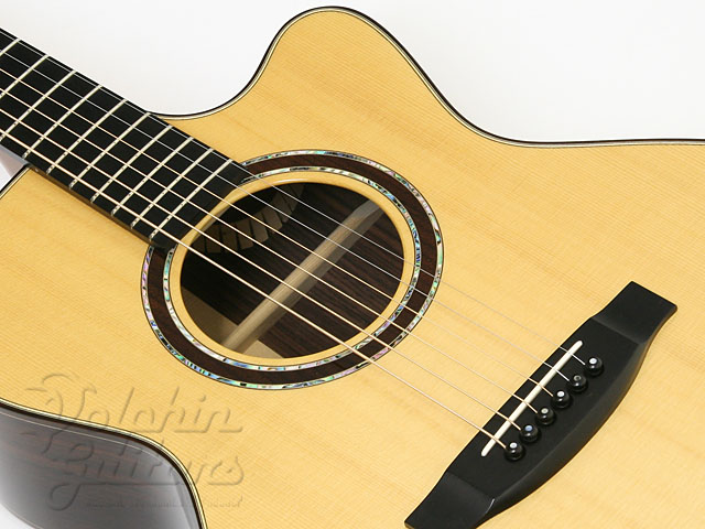 ヨーロピアン・スプルース・トップ、インディアン・ローズウッド・サイド&バック、マホガニー・ネック、エボニー指板&駒、ローズ&アバロン・ロゼッタ、シャーラー糸巻き、カッタウェイ。