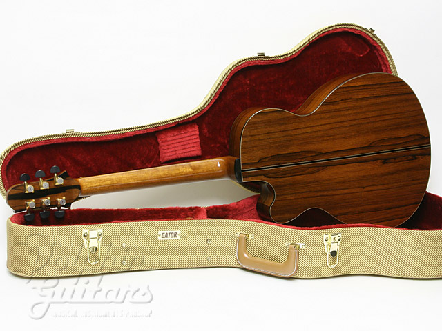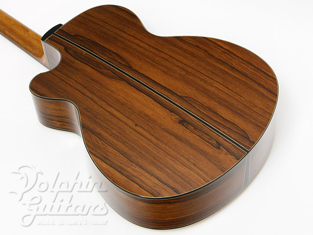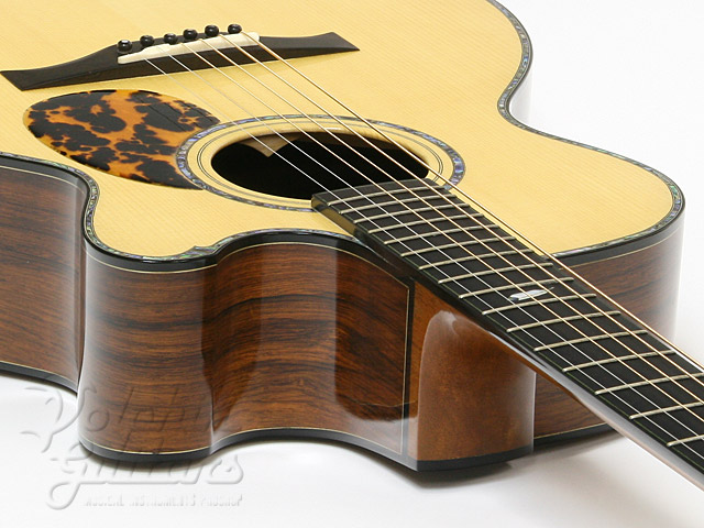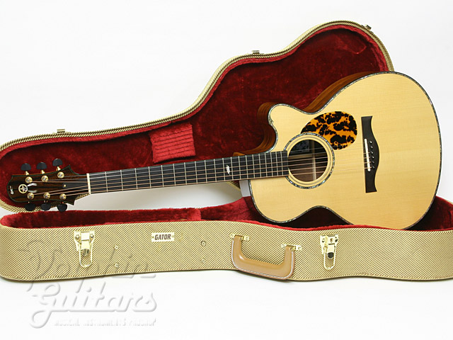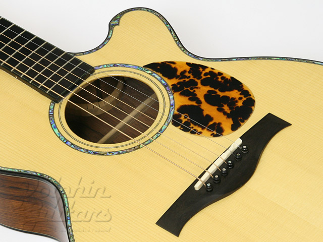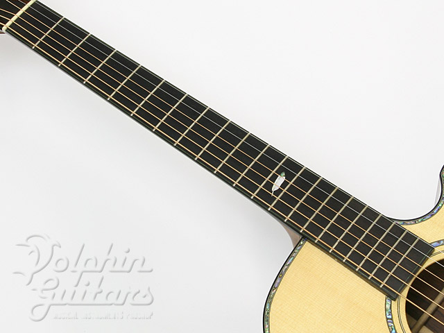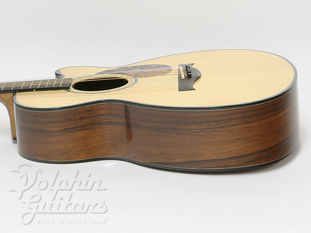 ジャーマン・スプルース・トップ、マダガスカル・ローズウッド・サイド&バック、、カッタウェイ、マホガニー・ネック、エボニー指板&駒、アバロン・ボディー・パーフリング&ロゼッタ。