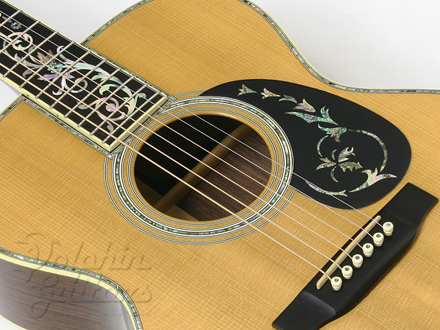 シトカ・スプルース・トップ、ローズウッド・サイド&バック、マホガニー・ネック、エボニー指板&駒、トリー・オブ・ライフ・指板インレイ、フローラル・インレイ・ピックガード、ネックサイド&ヘッドサイド・ソリッド・アバロン・42スタイル・アバロン・トリム。