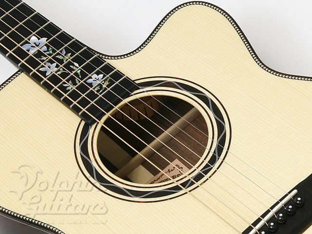ヨーロピアン・スプルース・トップ、パオ・ローズウッド(ボリビアン)・サイド&バック、ホンジュラス・マホガニー・ネック、エボニー指板&駒、フラワー指板インレイ、ヘリンボーン・トリム、ラッカー・トップ・フィニッシュ。