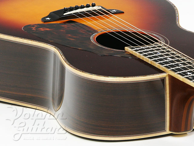 スプルース・トップ、インディアン・ローズウッド・サイド&バック、5Pネック、エボニー指板&駒、アバロン・トップ&バック・パーフリング・ロゼッタ&ヘッド、STAR指板インレイ、ゴトー糸巻、後付けB-BANDアクティブ・ピエゾ・ピックアップ搭載、サンバースト・カラー。
