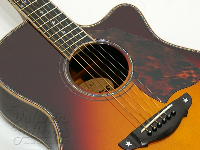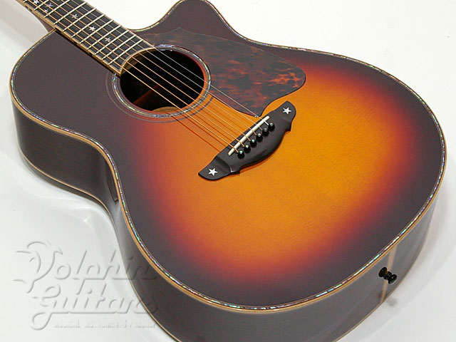 スプルース・トップ、インディアン・ローズウッド・サイド&バック、5Pネック、エボニー指板&駒、アバロン・トップ&バック・パーフリング・ロゼッタ&ヘッド、STAR指板インレイ、ゴトー糸巻、オリエンタル・サンバースト・カラー、カッタウェイ。