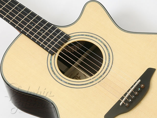 スプルース・トップ、ローズウッド・サイド&バック、カッタウェイ、ボディーはOMとDの中間サイズ