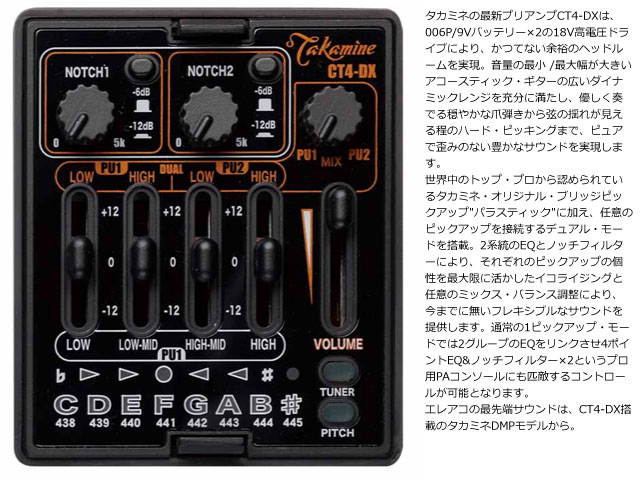 | Controls | VOLUME:LOW/Low-MID/High-MID/ HIGH/Notch.1/Notch.2(1PU Mode) LOW/HIGH/Notch×2(DUAL Mode) ・SWITCH TUNER POWER ON-OFF(with MUTE) TUNER PITCH CHANGE NOTCH CUT LEVEL SELECT(-6db/-12db) |