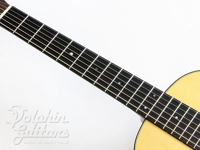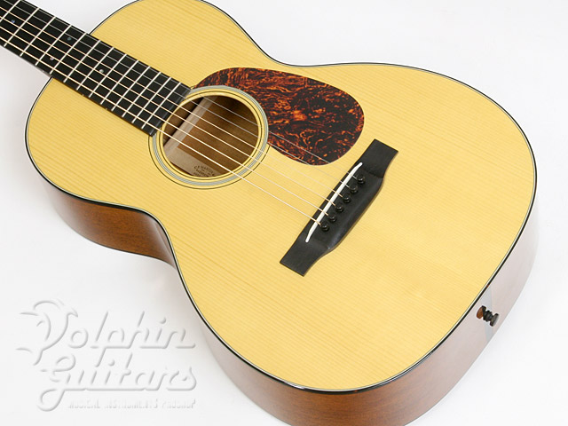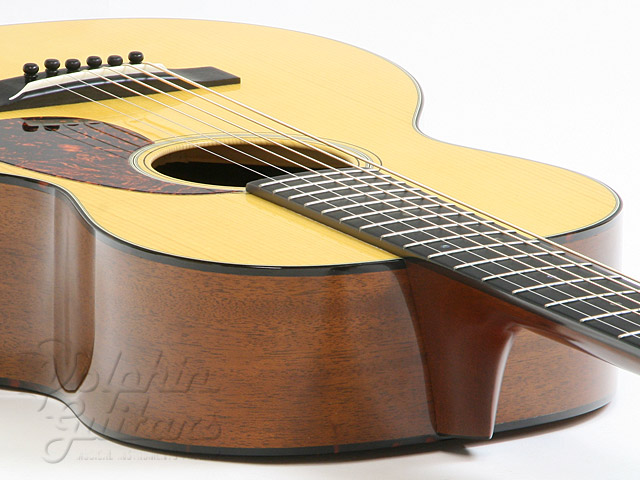 アディロンダック・スプルース・トップ、マホガニー・サイド&バック&ネック、エボニー指板&駒、12フレット・ジョイント、ソリッド・ヘッド、鼈甲柄ピックガード、ベリー・ブリッジ。
