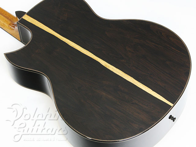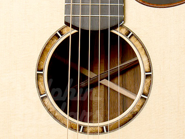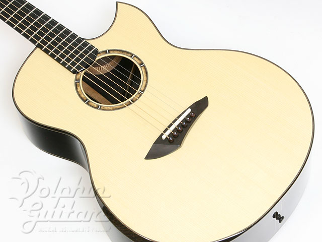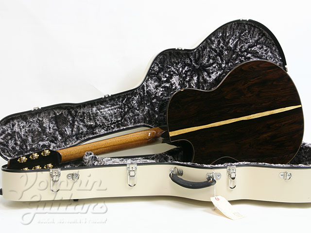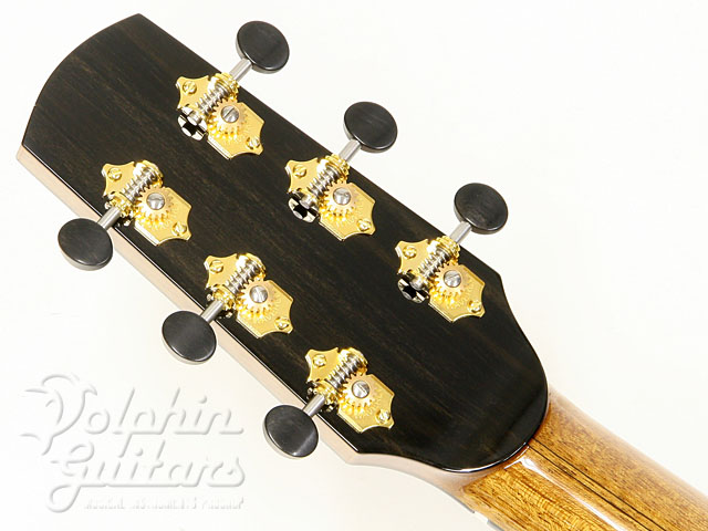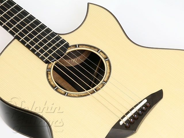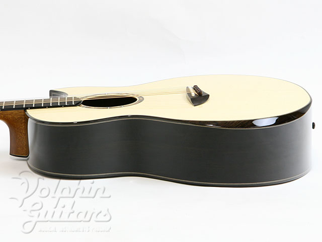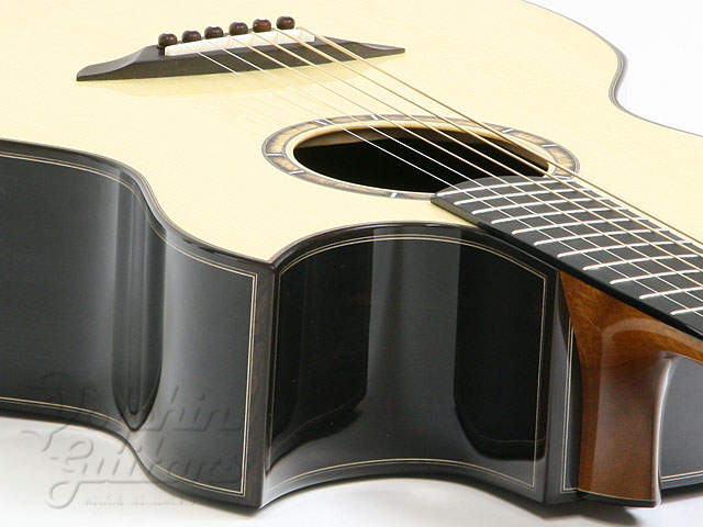 アディロンダック・スプルース・トップ、アフリカン・ブラックウッド・サイド&バック、ホンジュラス・マホガニー・ネック、エボニー指板&駒、カッタウェイ、ウェバリー糸巻き、セグメント・ロゼッタ。