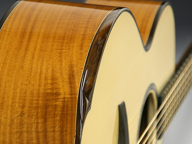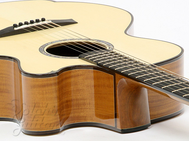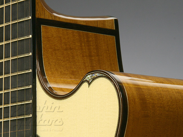 ジャーマン・スプルース・トップ、キューバマホガニー・サイド&バック、カッタウェイ、マホガニー・ネック、エボニ指板&駒、エルボー・コンター。