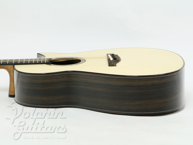 ボディ容積は一般的なドレッドノートとほぼ同一ですが、若干絞ったウエストは従来のダイナミックなサウンドに加え、より繊細で引き締まった音を表現しています。