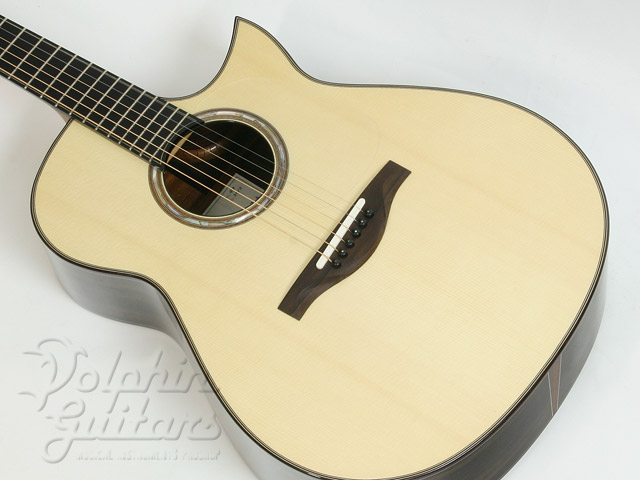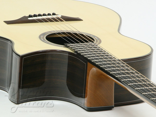 イタリアン・スプルース・トップ、インディアン・ローズウッド・プライサイド&ソリッドバック、ホンジュラス・マホガニーネック、エボニー指板、マダガスカル・ローズウッド駒、ニトロセルロース・ラッカーフィニッシュ。