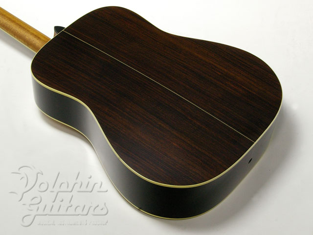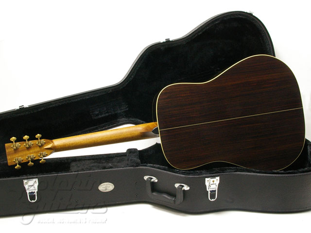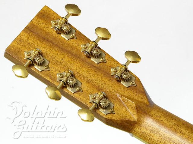 ベッコウ柄のピックガードや、オープンギアのバターピンタイプペグ、スクエアーなヘッド形状といった仕様は、アメリカン・ヴィンテージギターを意識したというヴィンテージ・シリーズ、D34-SR。