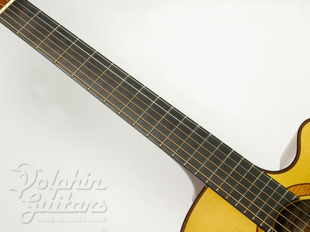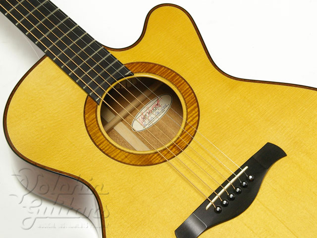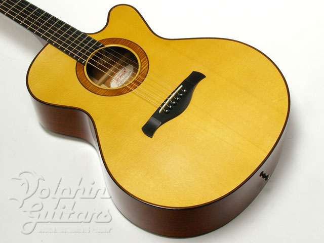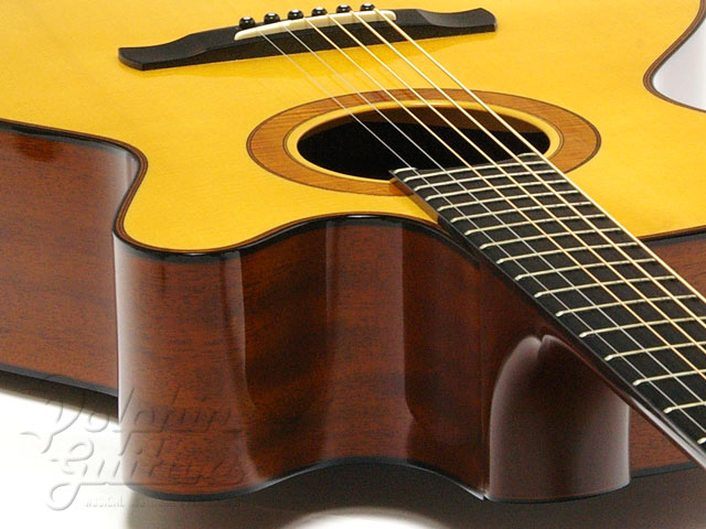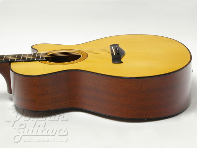 ジャーマン・スプルース・トップ、フィギャード・ホンジュラス・マホガニー・サイド&バック、カッタウェイ仕様、ホンジュラス・マホガニー・ネック、エボニー指板&駒、ウッド・ロゼッタ、632mmスケール、46mm幅ネック。