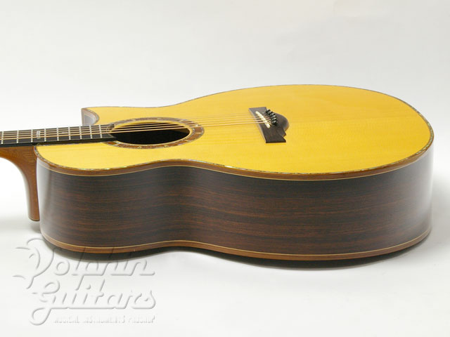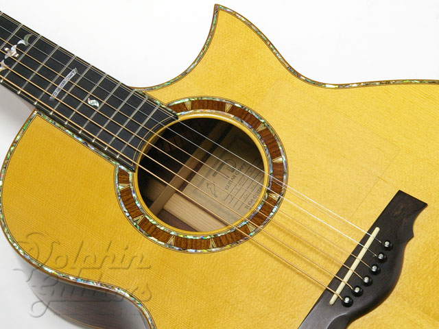 スプルース・トップ、ローズウッド・サイド&バック、マホガニー・ネック、エボニー指板&駒、ウッド&アバロン・ロゼッタ、アバロン・ボディトリム、フローレンタイン・カッタウェイ。