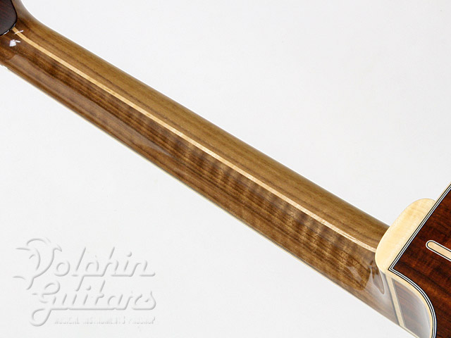 レクタングル(長方形)に配置されたフィンガーボードのインレイデザイン、ブリッジの両端に埋め込まれたウッドの装飾、コアウッドで製作されたトラスロッドカバーなど、見ていてうっとりしてしまうディティールです。
