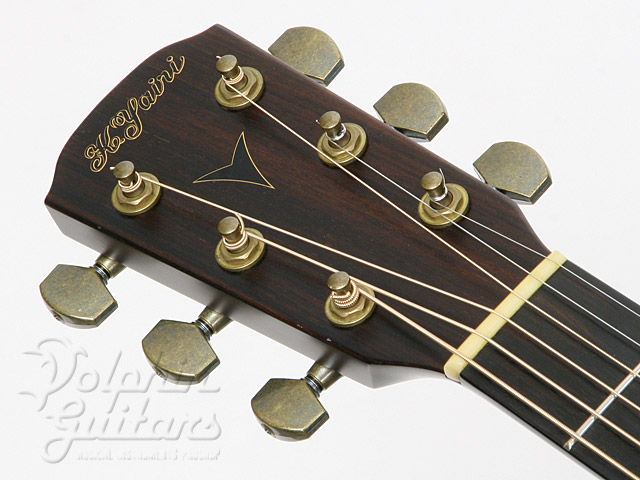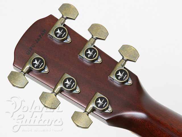 単板スプルース・トップ、単板フレーム・メイプル・サイド&バック、マホガニー・ネック、エボニー指板&駒、アバロンロゼッタ、ウッド・ピックガード、Gotoh糸巻き