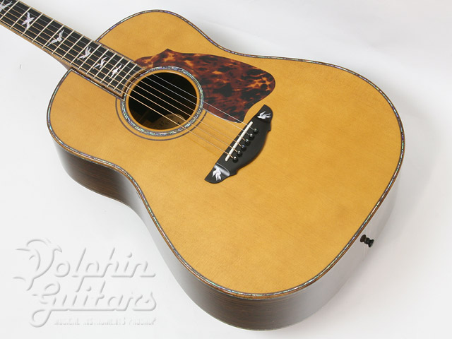 スプルース・トップ、インディアン・ローズウッド・サイド&バック、5Pネック、エボニー指板&駒、アバロン・トップ&バック・パーフリング・ロゼッタ&ヘッド、バード指板&駒インレイ、ゴトー糸巻き。
