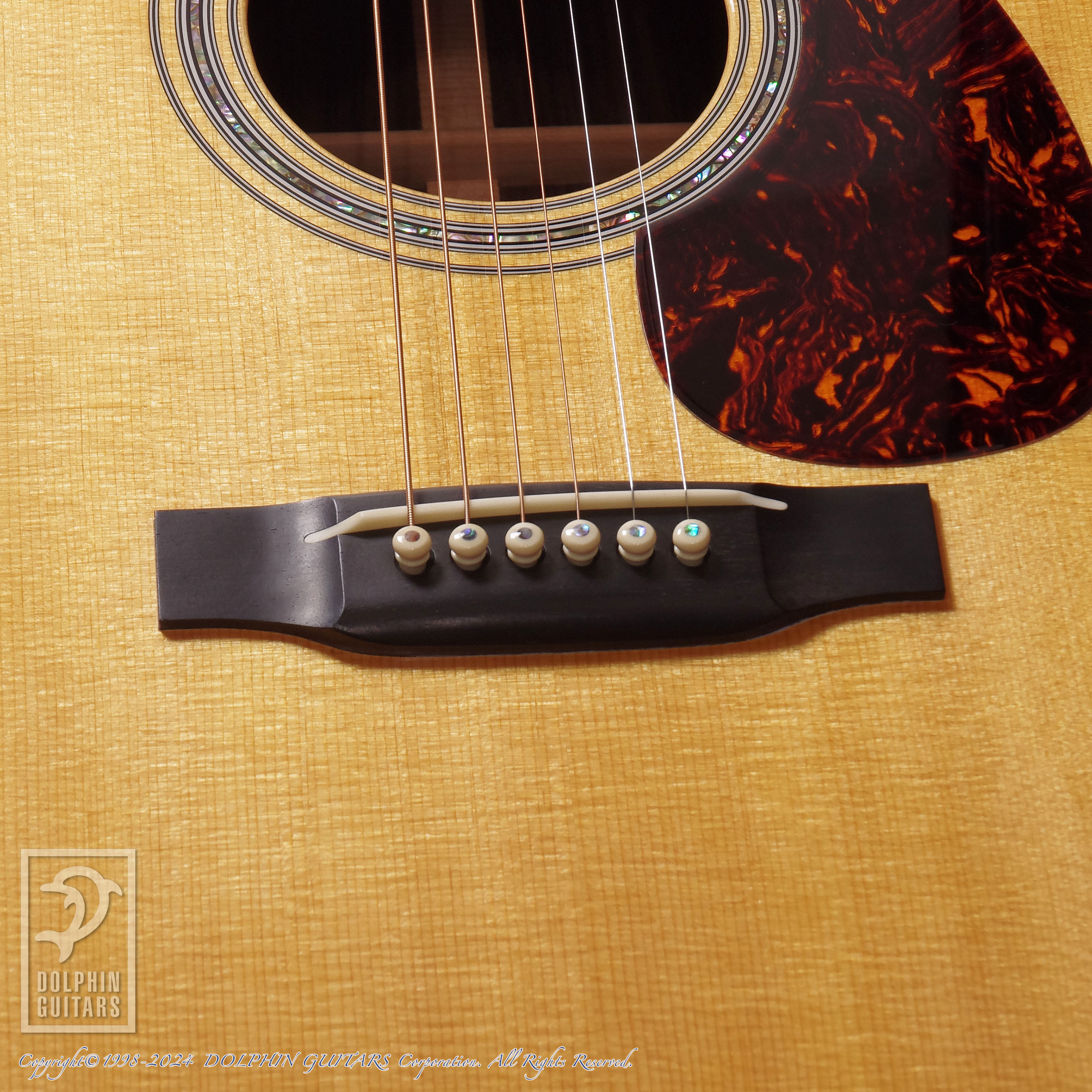 指板インレイは1938年までのスノーフレイクを採用し、ヘキサゴンとはまた違った美しさや印象を与えます。フォワードシフテッド・スキャロップドXブレイス仕様によるサウンドは、広角に飛び、弾力や低音の迫力、高音弦の煌びやかさを存分に感じされる個体です。