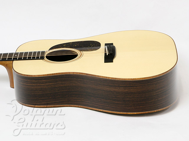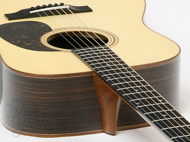 厳選されたジャーマン・スプルース・トップ、インディアン・ローズウッド・サイド&バック、ホンジュラス・マホガニー・ネック、エボニー指板&ブリッジ、ハーフ・グロス・フィニッシュ。