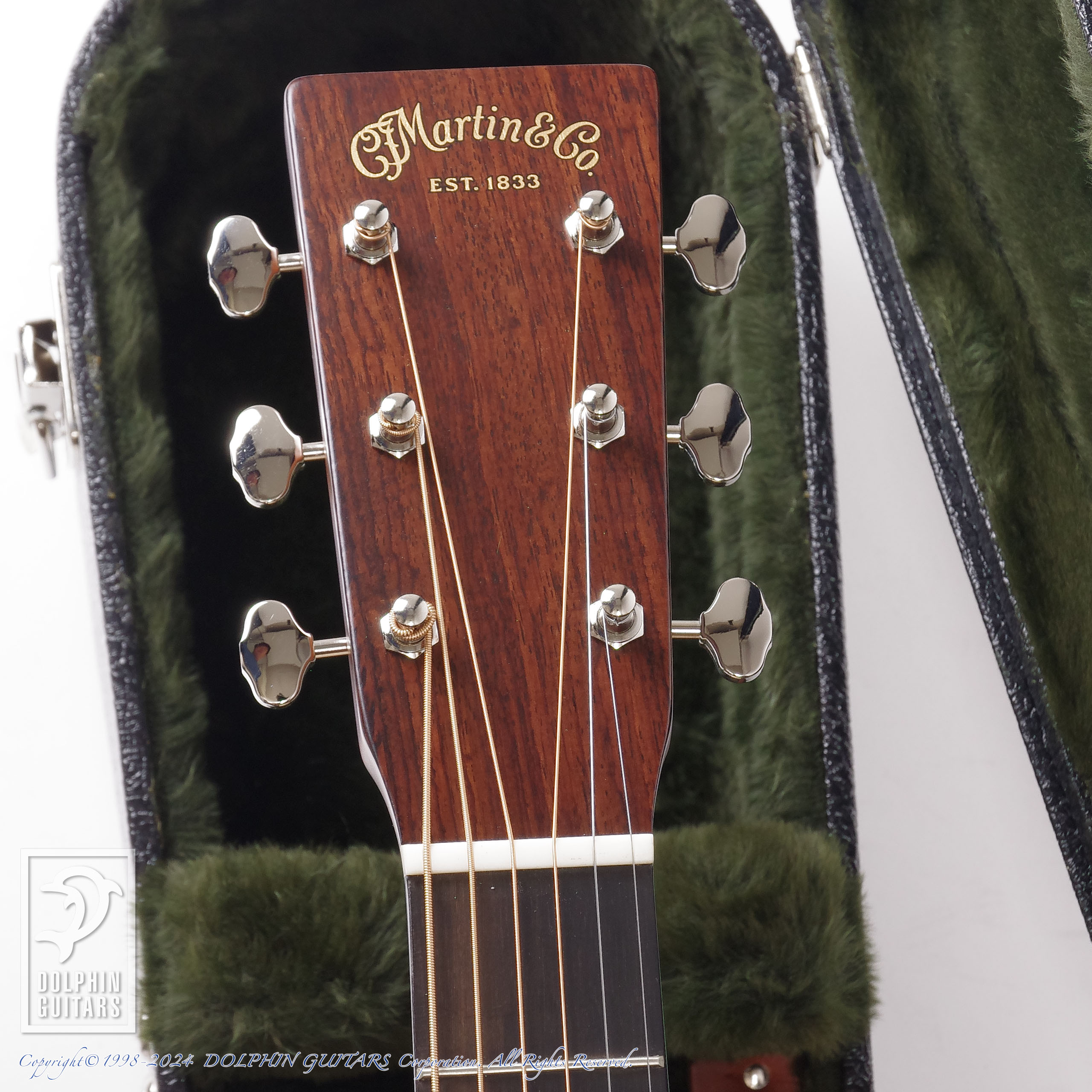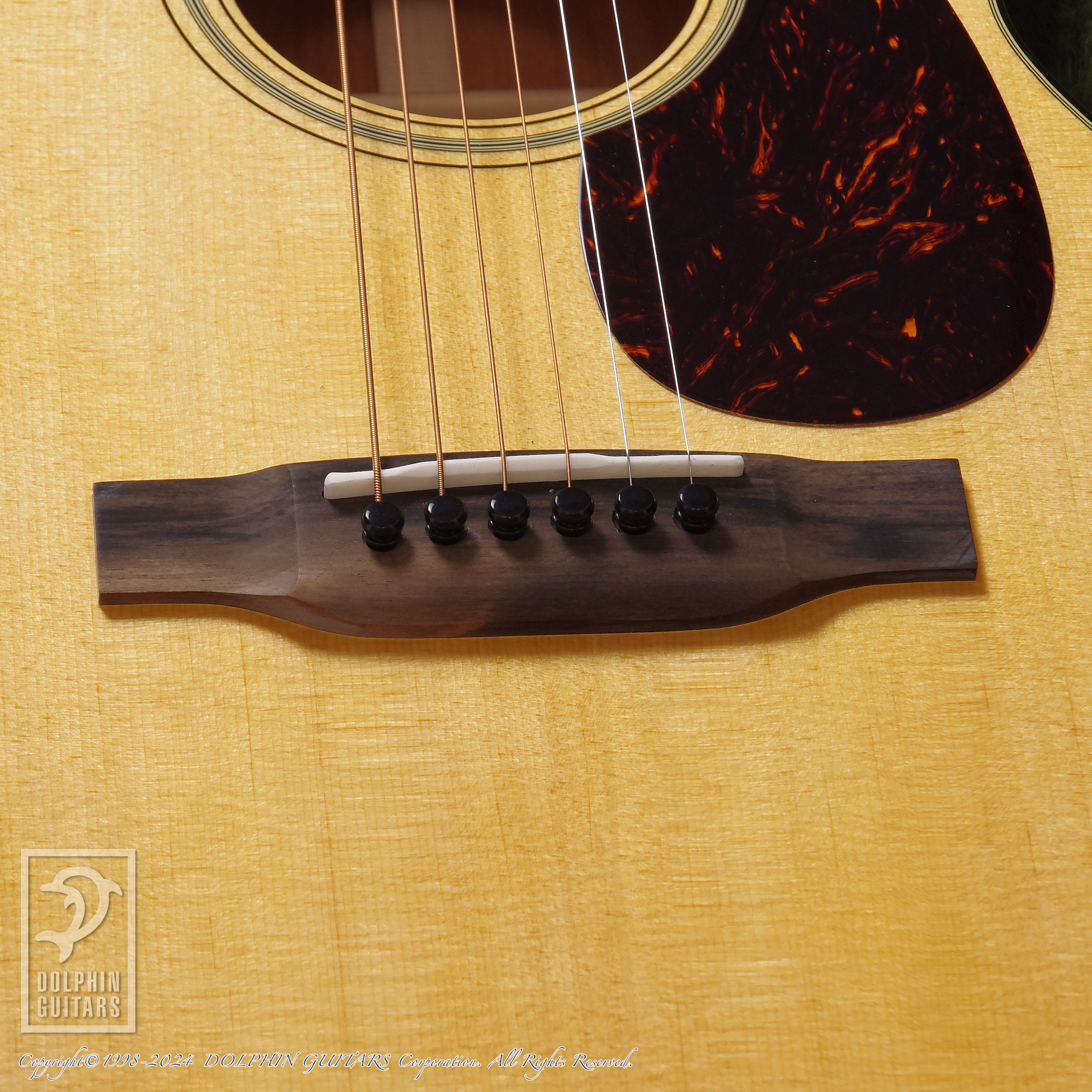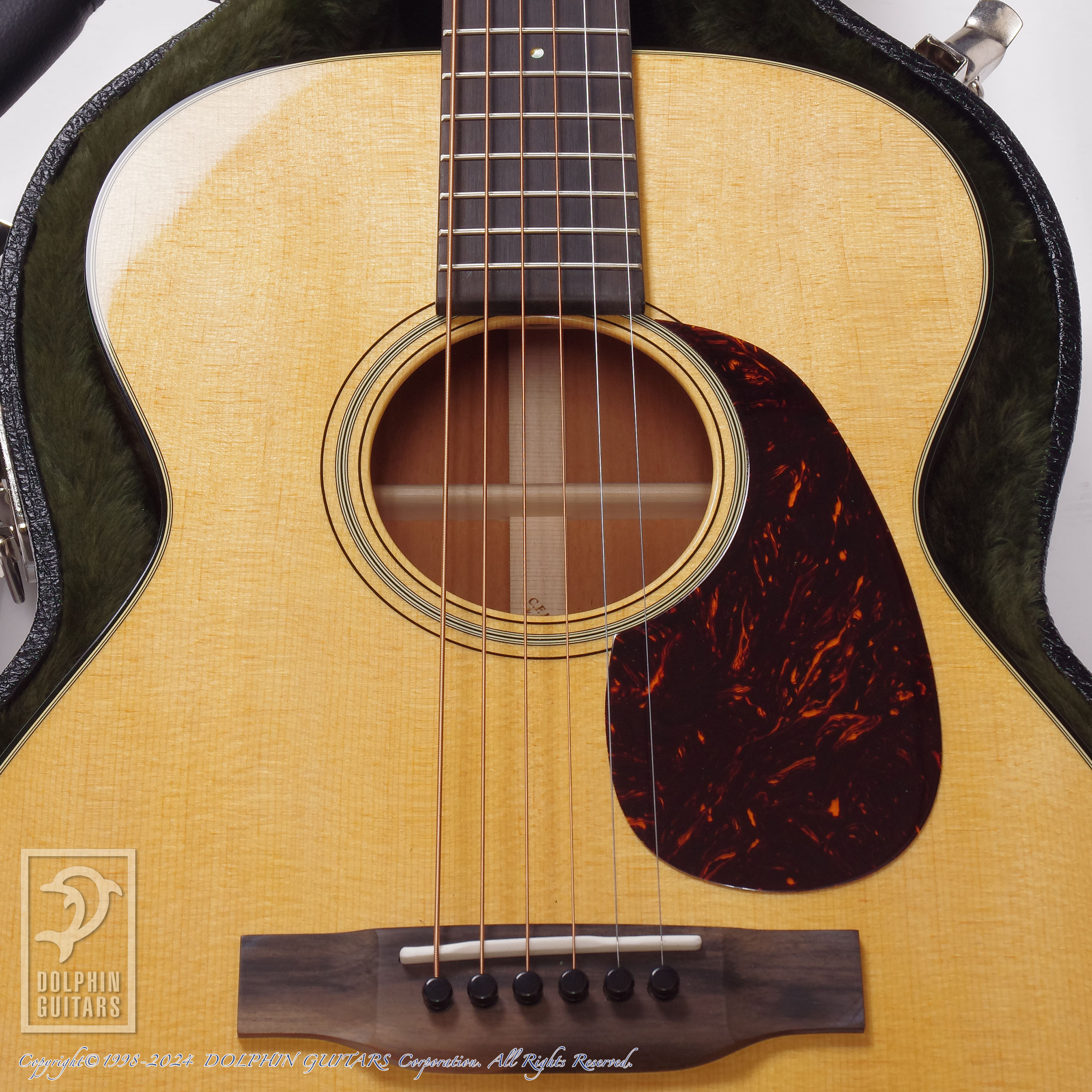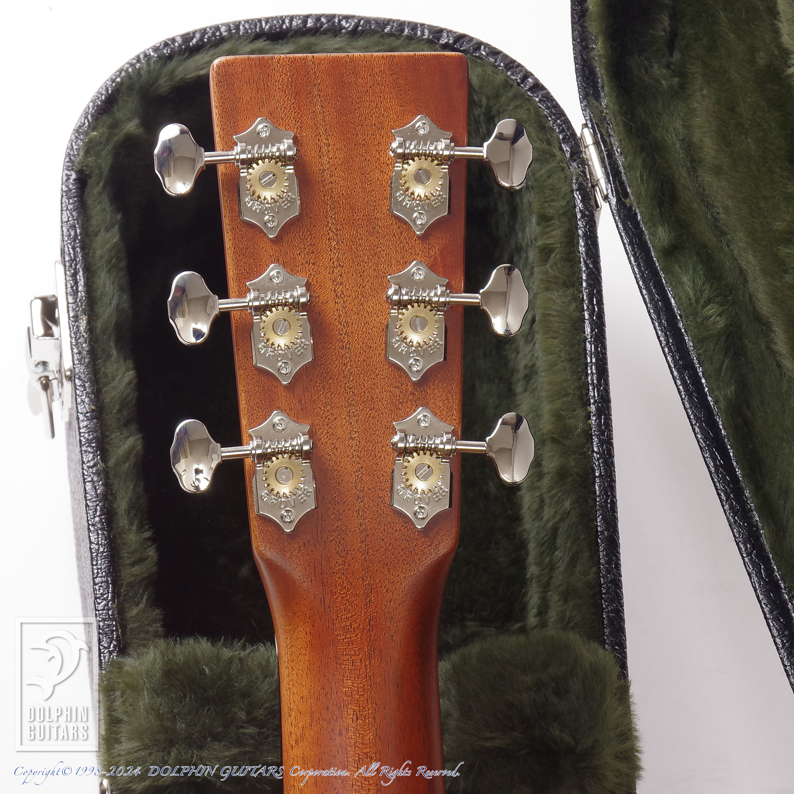 ナット幅は以前42.9mmでしたが現在は44.5mmとなり、ネックシェイプは薄手のロープロファイル、スキャロップドブレイスなどなど、より現代的な仕様となった箇所や、エボニー指板&ブリッジ、デカールロゴなどのヴィンテージスタイルも盛り込まれ、往年のマーティンファンも納得の完成度と言えるでしょう。