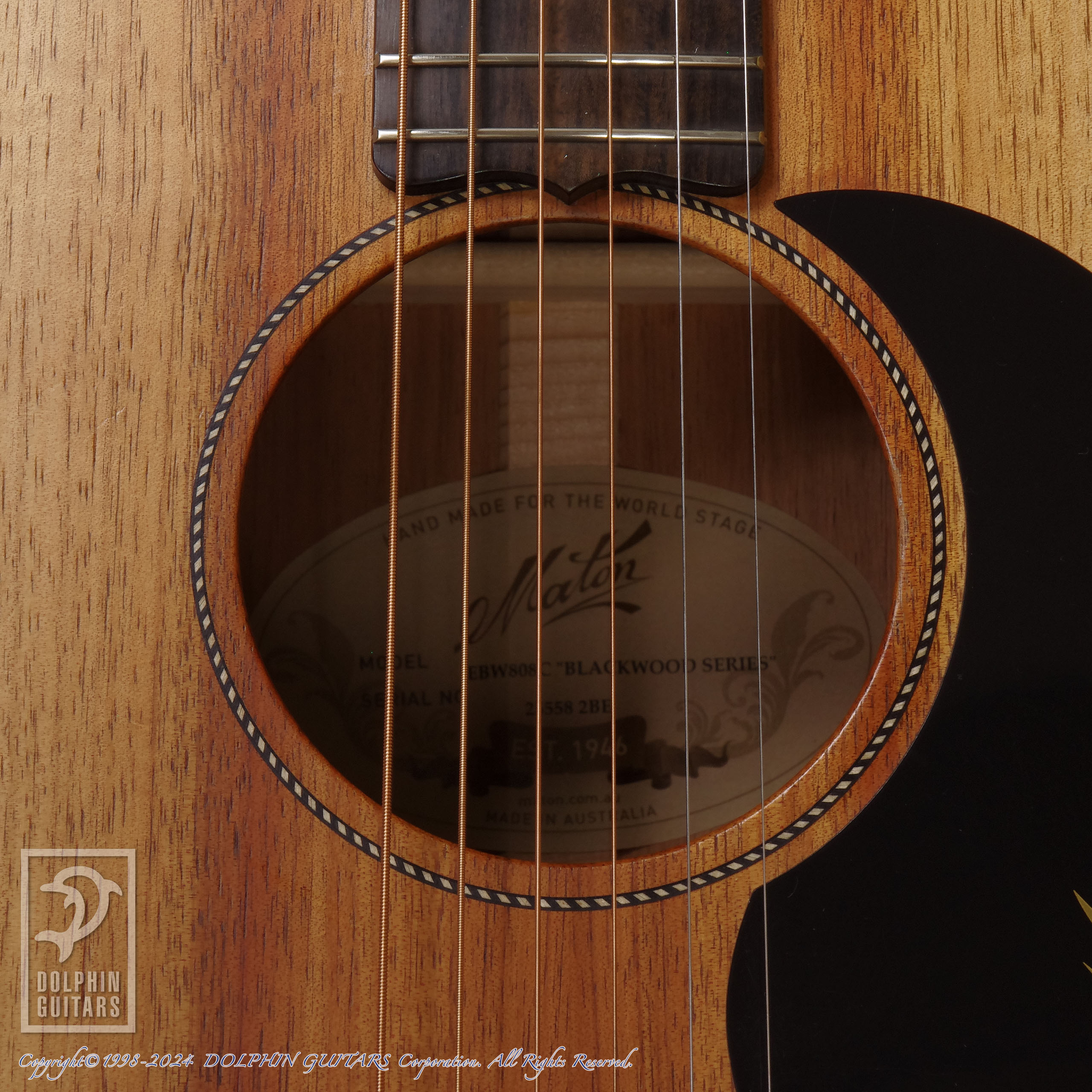 オーストラリアンブラックウッドはアカシア属の植物であり、ハワイアンアンコアも同じアカシア属。木目や色合いも非常に似ており、明るくハリのあるサウンドのコアに比べ、ブラックウッドはローミッドが強調され、ややダークな印象で、他のスプルーストップのモデルとはハッキリと異なるサウンドキャラクターです。