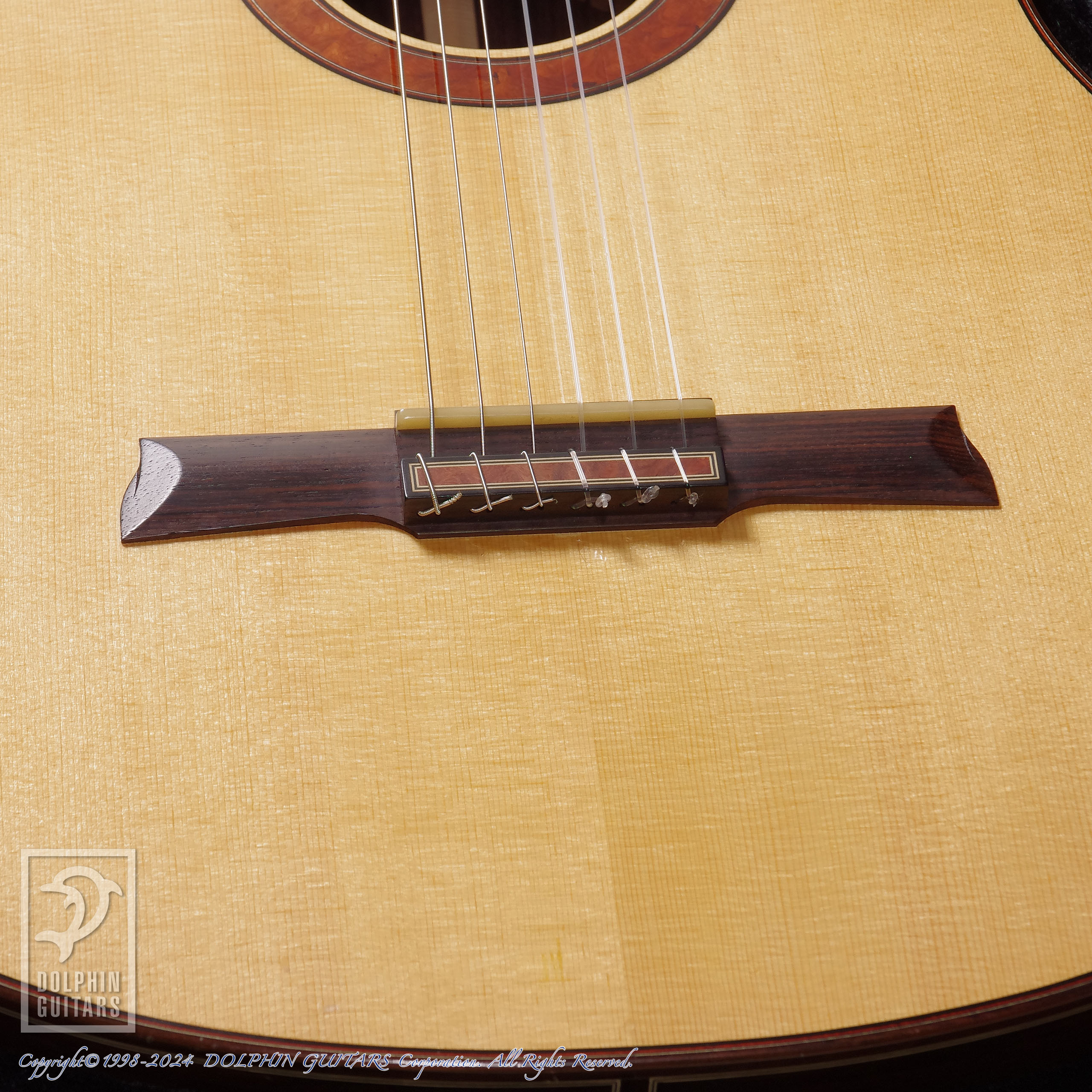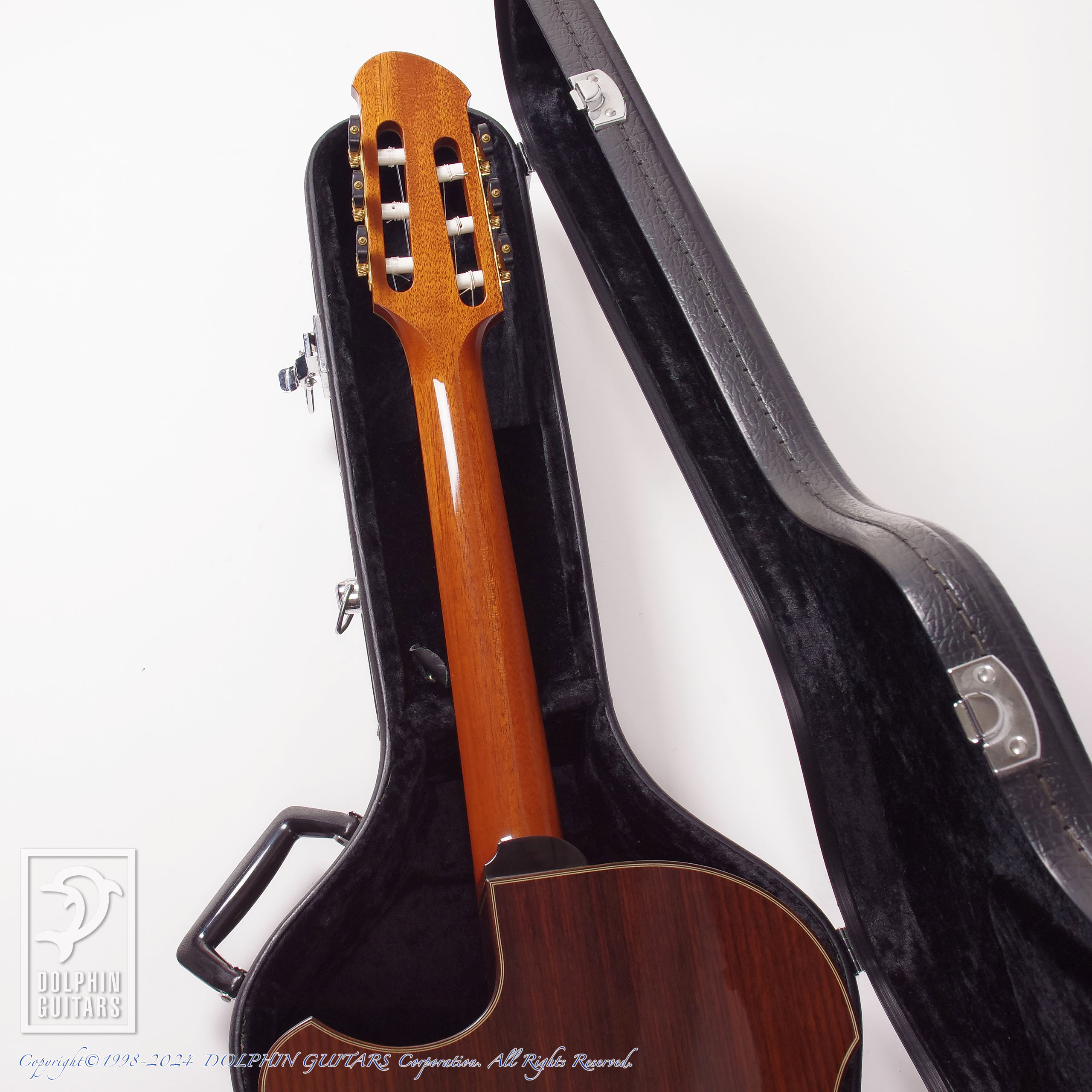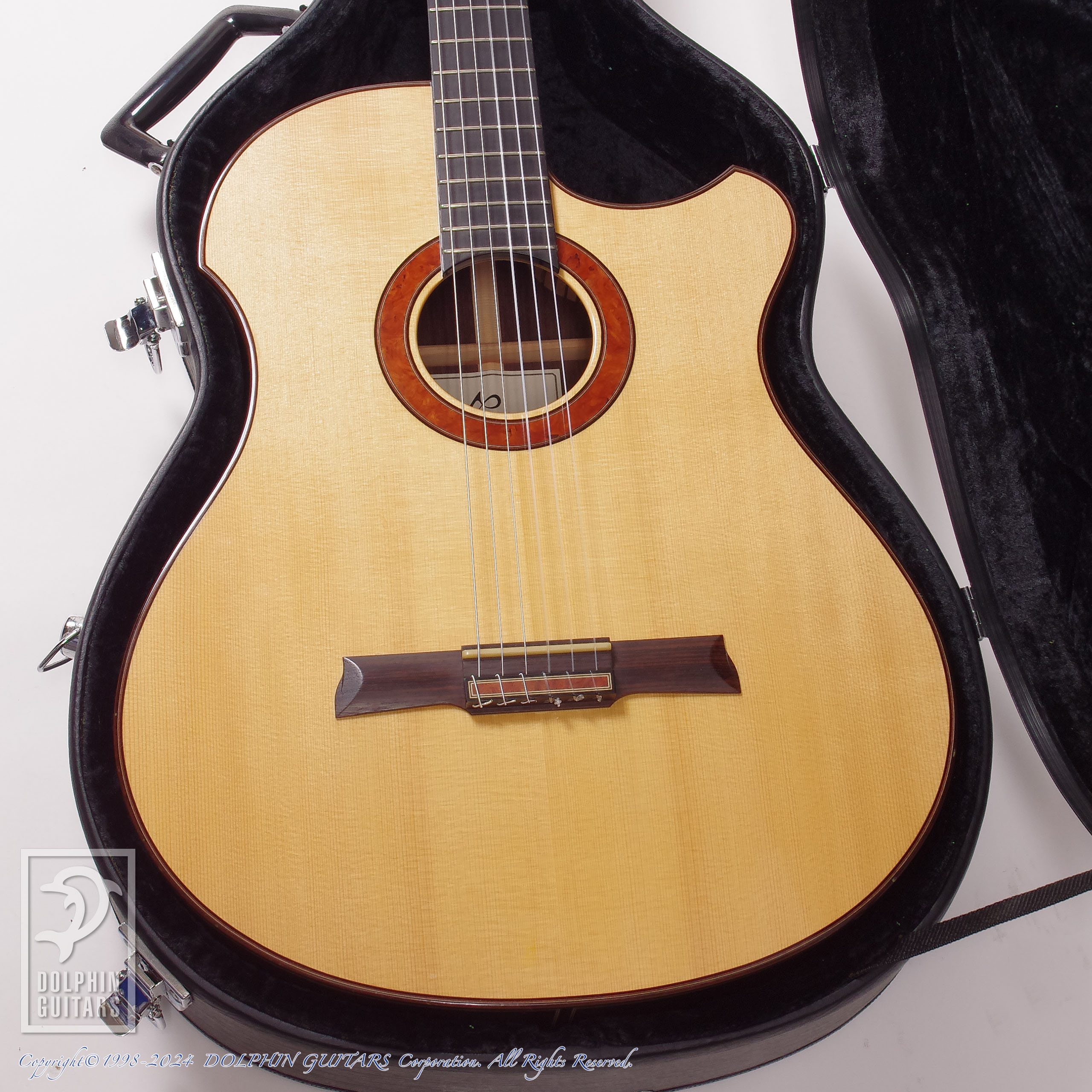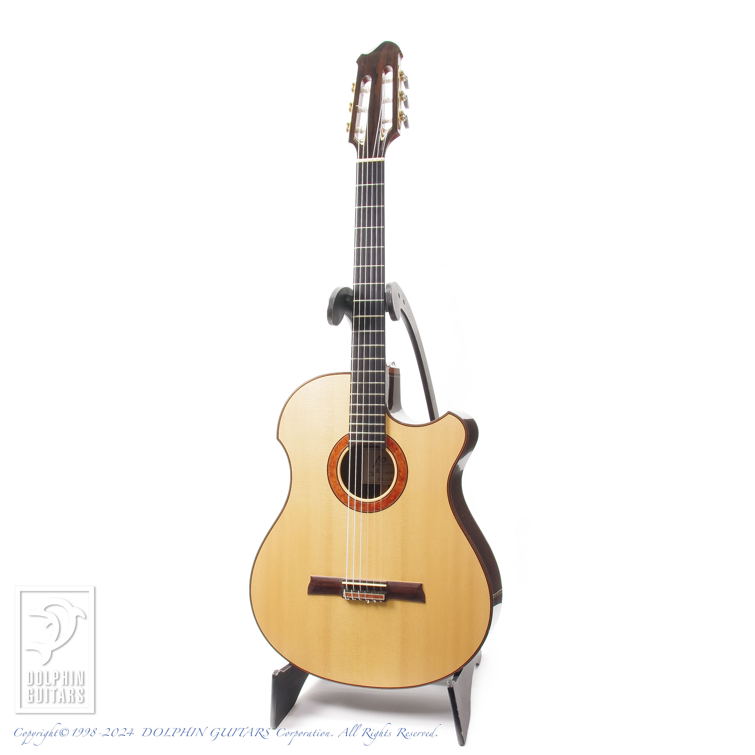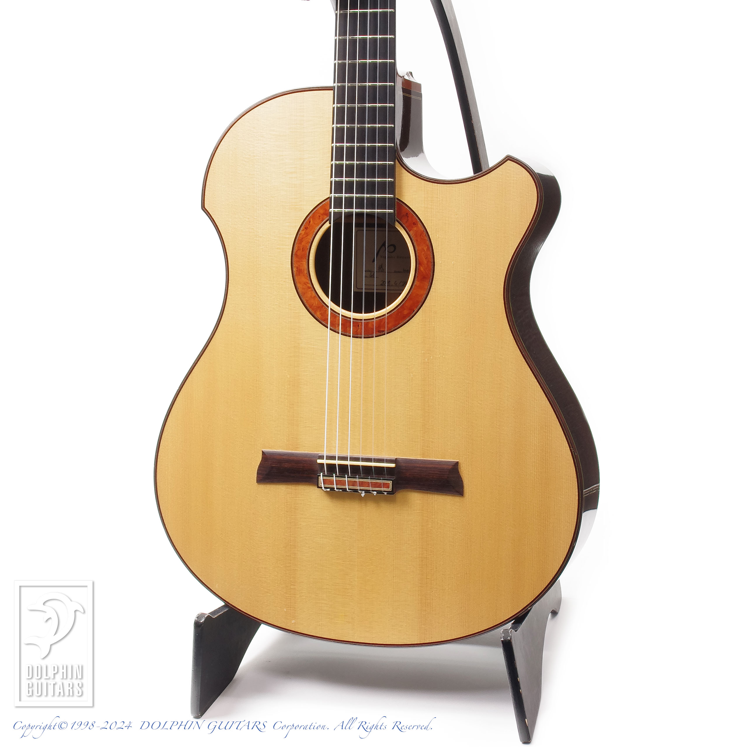 クロスオーバー・ジャズナイロン的なサウンドメイクではなく、生音をメインとして仕様できるほど豊かなサウンドを聴かせ、ローズウッドを使用した深みあるサウンドのフラメンコギターに近いかと思いますので、ルックスからイメージされるサウンドとは良い意味で違った印象を受けるかもしれません。6弦開放の深みや低音弦のキレの良さも素晴らしいものがあります。