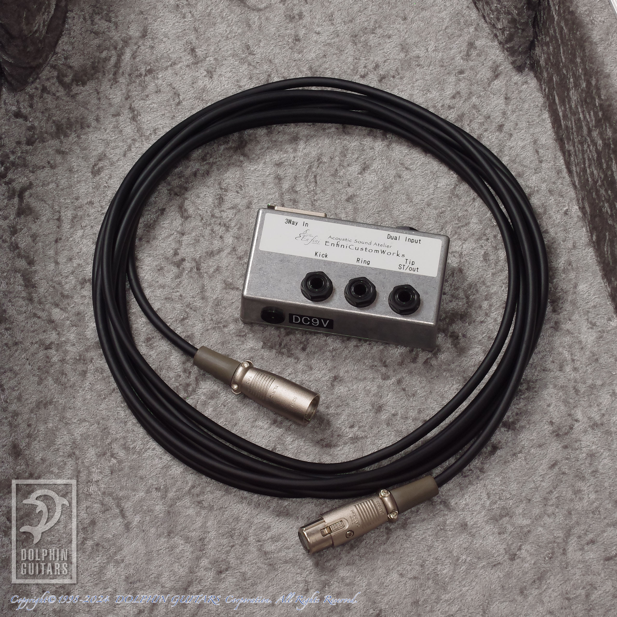 PUシステムはAP5Proを標準搭載し、アンダーサドルPUとコンデンサーMicをMixし、リアルなアコースティックサウンドを出力します。その他後付けにてアンフィニカスタムワークスのコンタクトピエゾPUが搭載されており、エンド部のXLRアウトジャックが増設されており、専用ケーブルとパラボックスが付属します。(サンライズS-2と組み合わせて使用されていたようです)