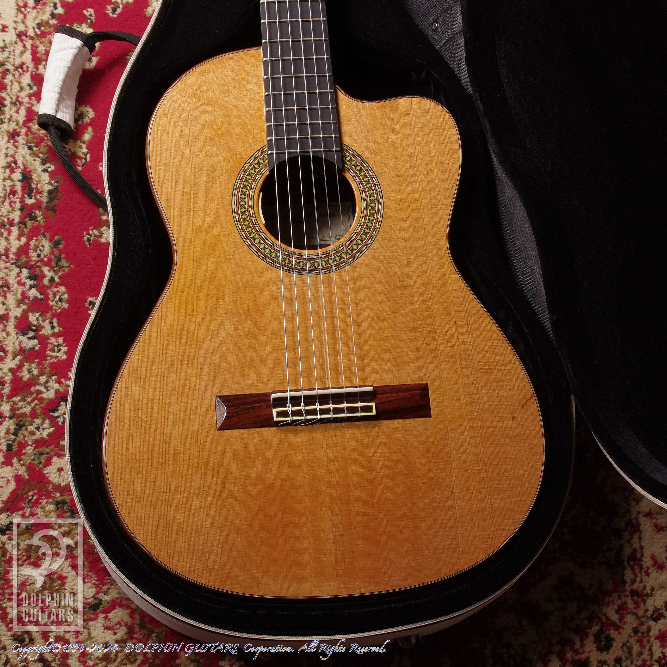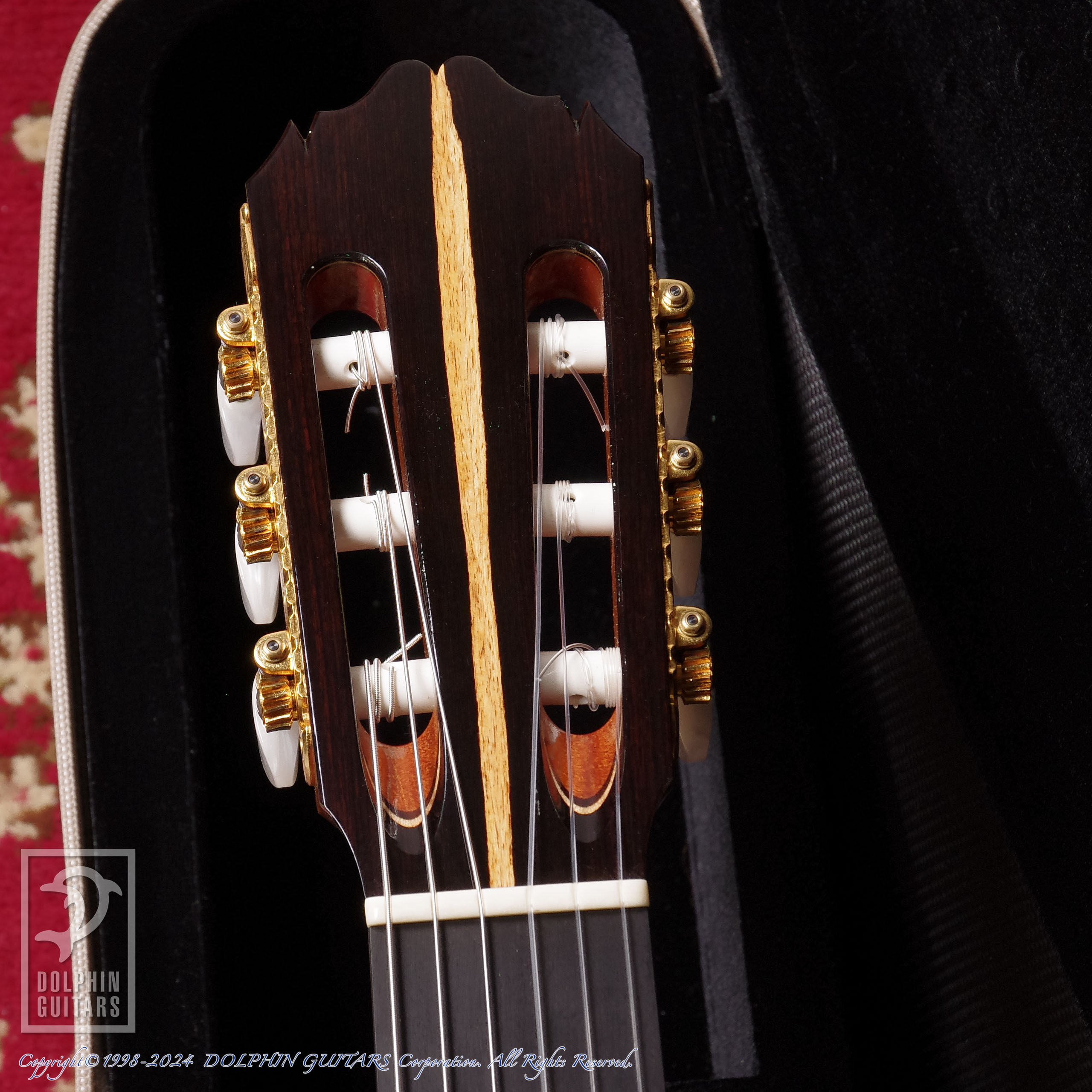 一般的なクラシックギターよりも僅かに細くした49mmナット幅と、やや薄手のCシェイプのネックが非常に握り心地も良く、コードチェンジやフィンガリングもスムーズにプレイできます。生鳴りやサウンドバランスを重視したブレイシングパターンやバック材の厚みを調整し、これまでの作品の中でも最も上質さや重厚さを感じさせる仕上がりです。