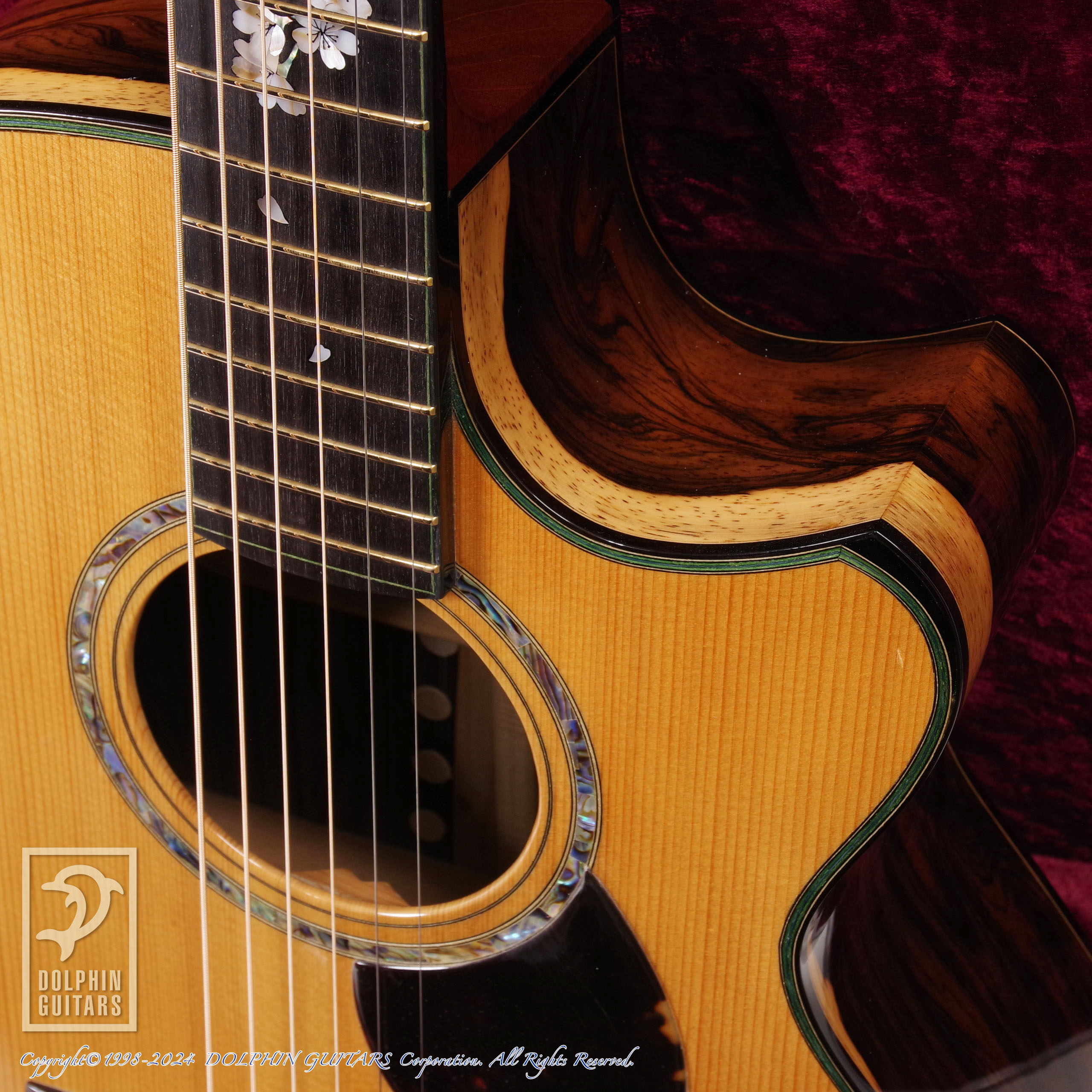 その他:フローレンタインカッタウェイ、エボニーバインディング、44,5mmナット幅、645mmスケール、本鼈甲PG&トラスロッドカバー、桜インレイ、EVOゴールドフレット