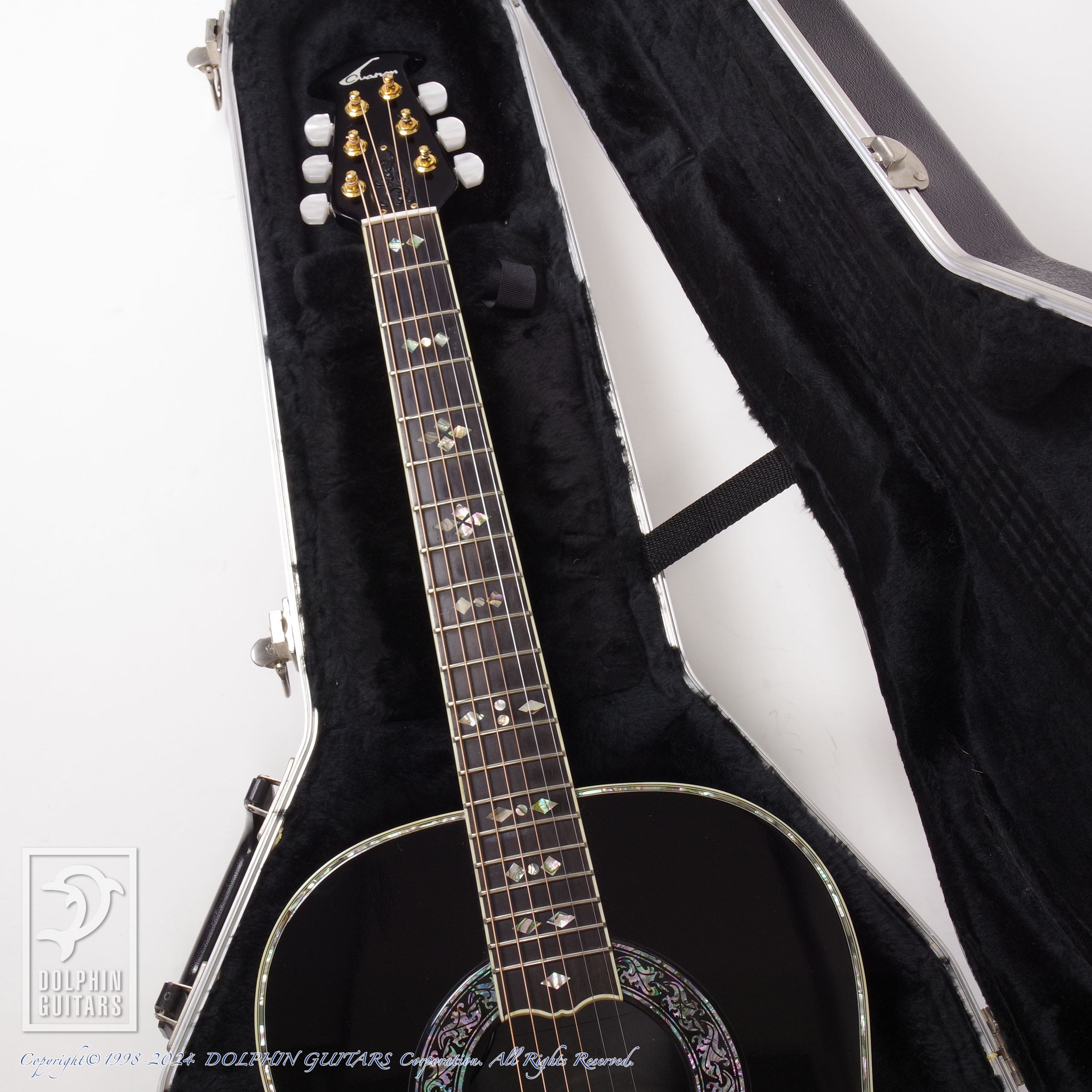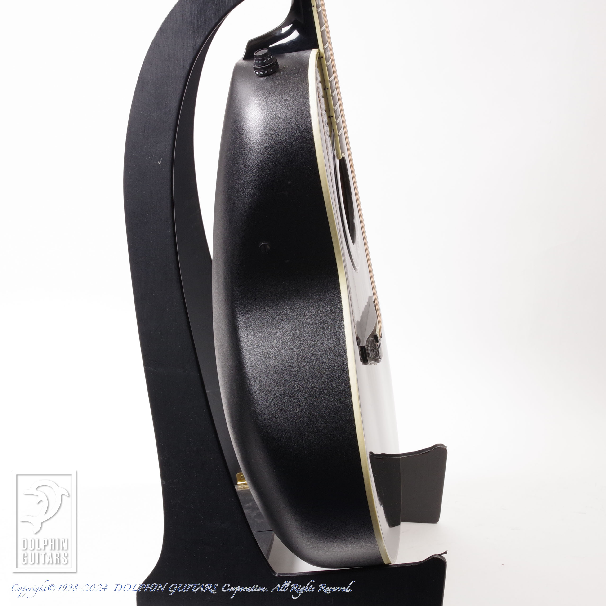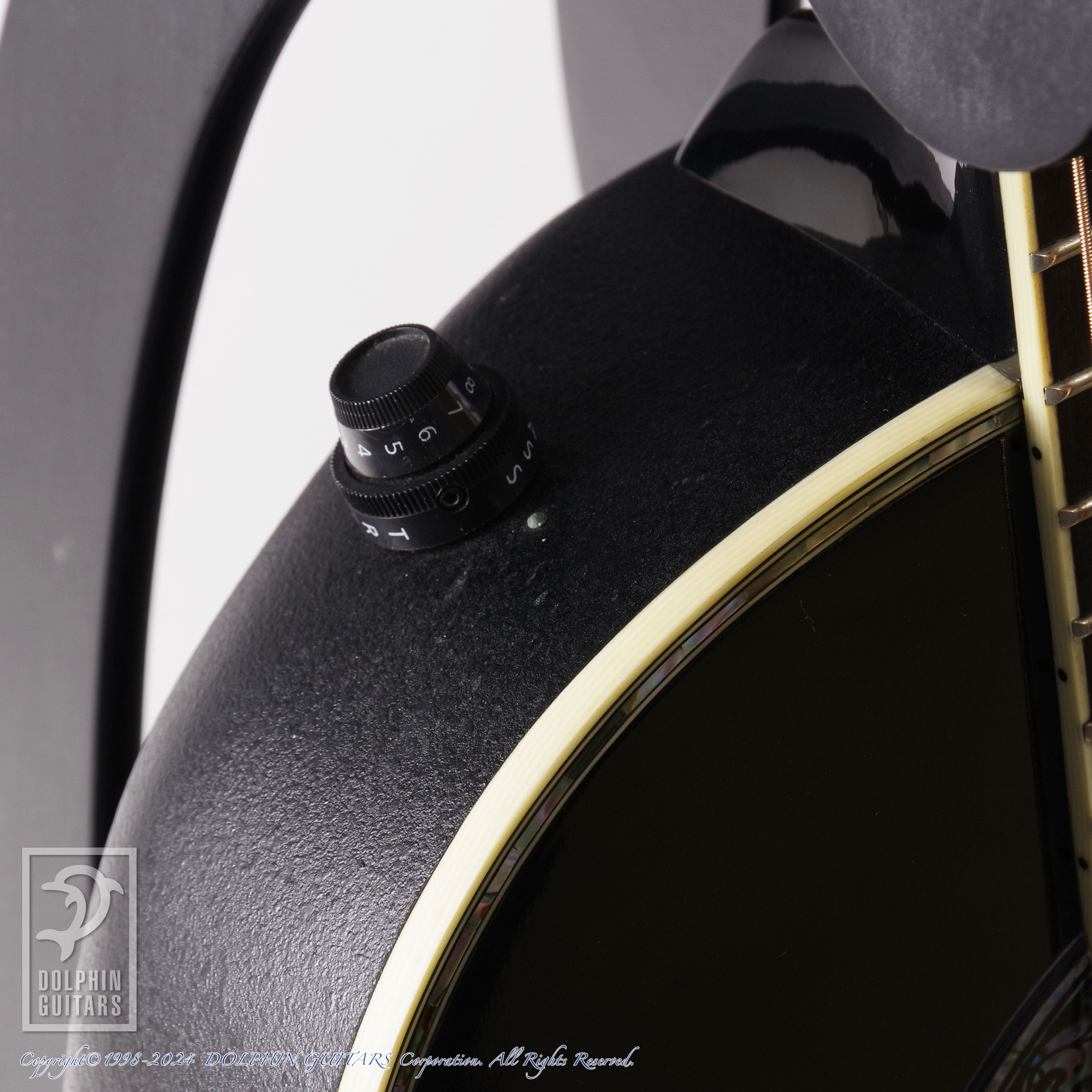 ブラックカラーのトップ面に豪華なアバロンのパーフリングやロゼッタの輝く逸品。ルックスはまさにポールサイモンが手にした"あの"カスタムレジェンドです。