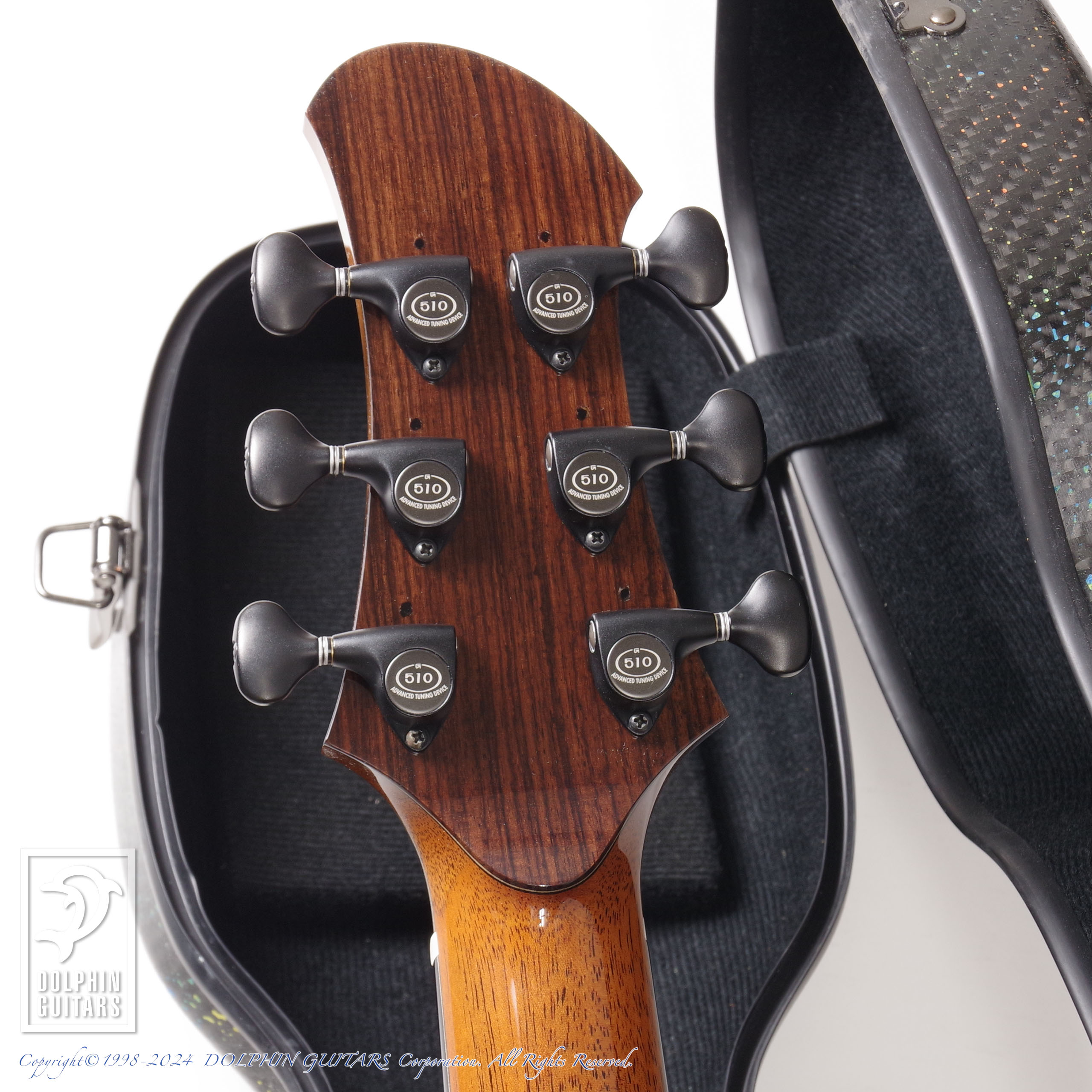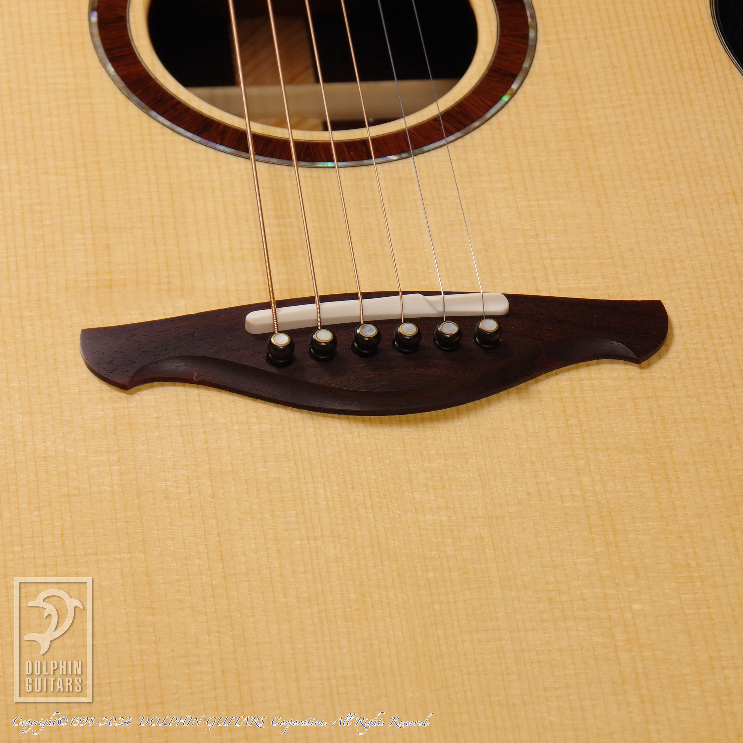 重厚な音響特性を持つホンジュラスローズウッドならではの太く低音の効いたサウンドを放ち、高音弦の華やかな音色に、ストロークでも音潰れせず、サイズ以上のトルクフルな音量、ハイポジションでも音痩せがなく伸びのあるサウンドを奏でます。