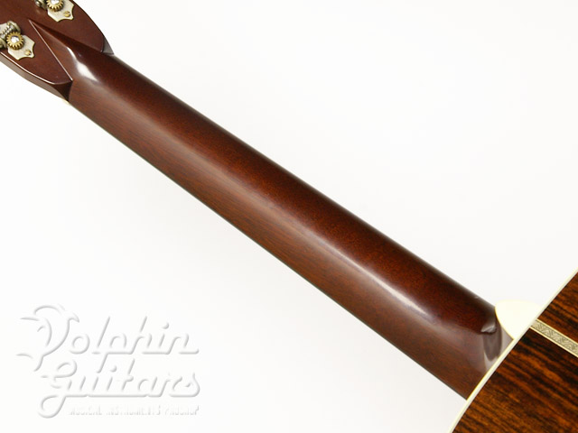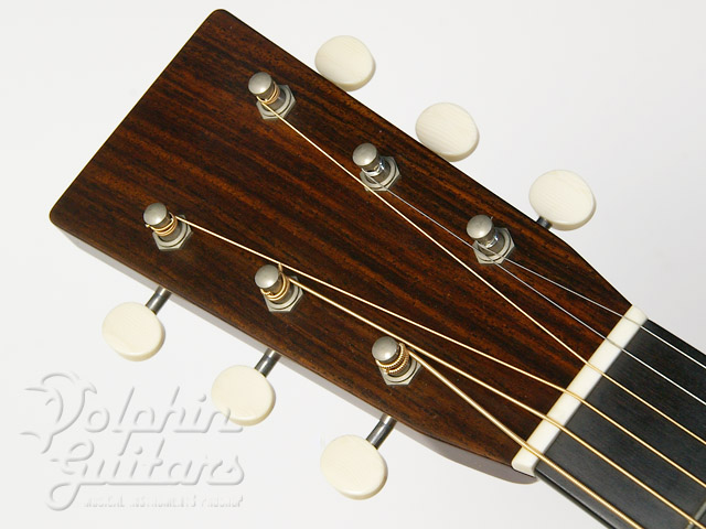 シトカ・スプルース・トップ、インディアン・ローズウッド・サイド&バック、ヘリンボーン・トリム、ロングサドル、ウェバリー糸巻き、アイボロイド・ボタン。