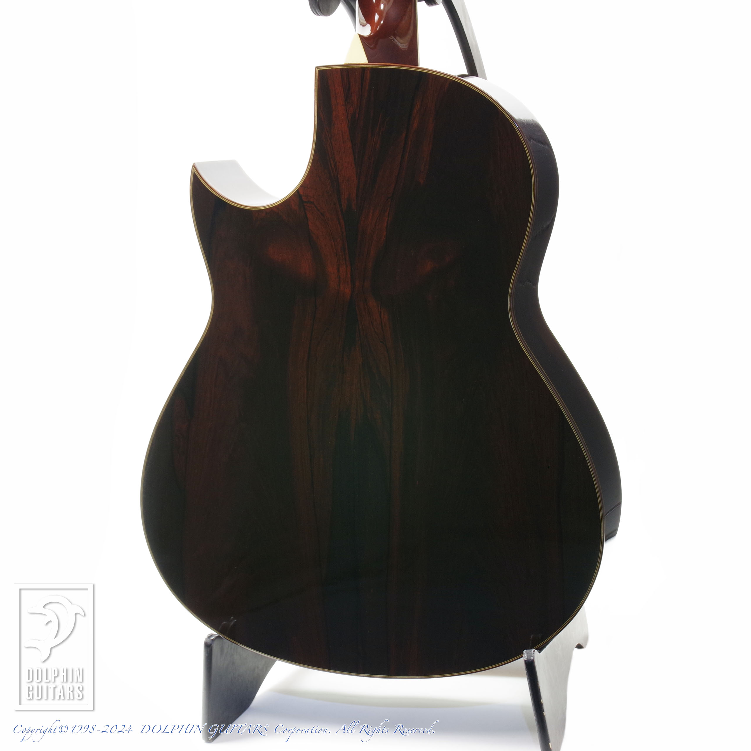 サイド&バックには上質でルックスも美しいハカランダが使用されており、ハカランダの音響特性も本器のリッチでパワフルなサウンドの一翼を担っています。